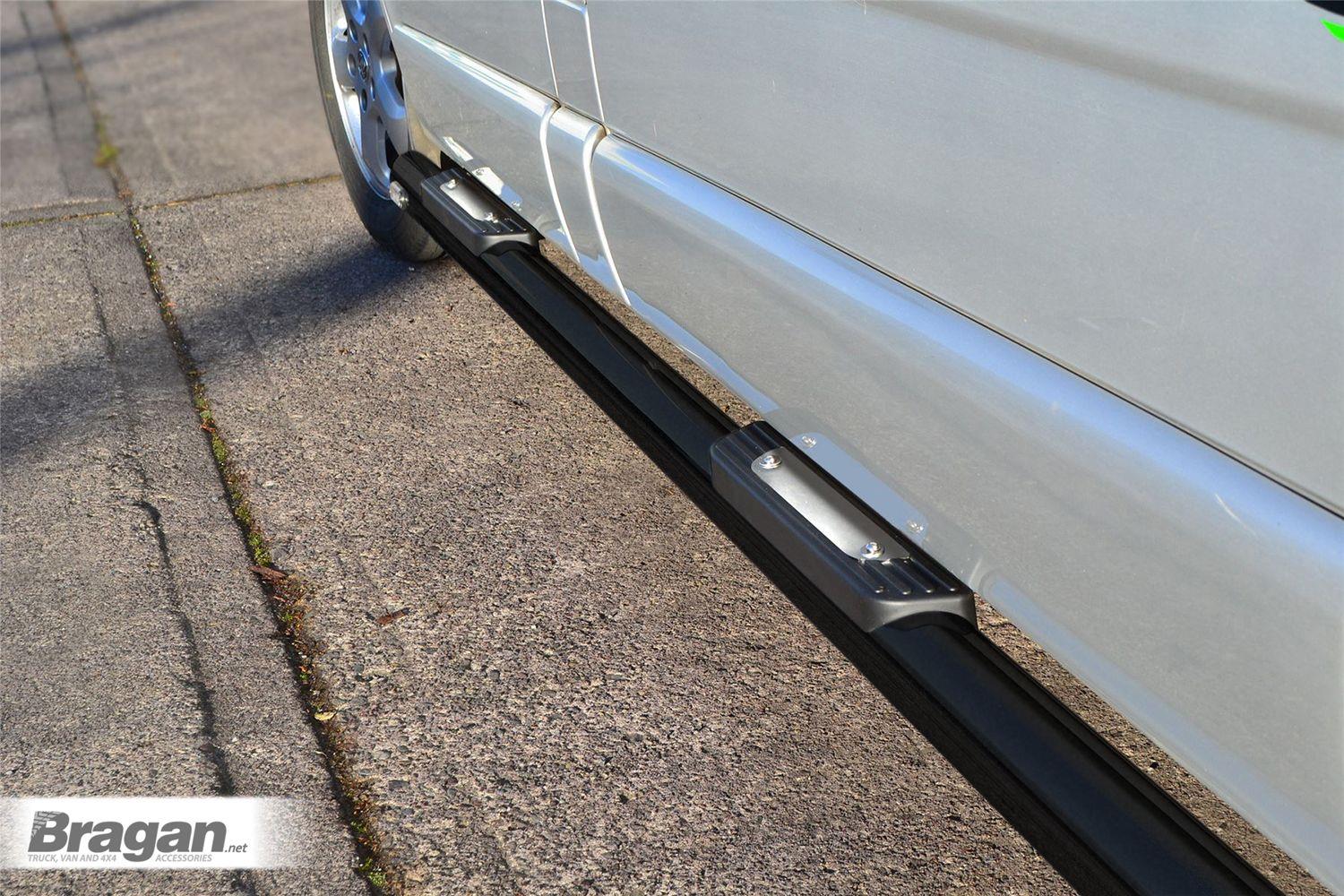 Please note: Sale is for Sidebars + Step Pads x3, LED lights are not included. Please see other listings for Side Bars + Step Pads + LEDs. Will not fit vehicles with rear wheel drive, brackets will need alteration to fit. Brackets come for single sliding door - please contact before purchase if you have 2 sliding doors. Additional bracket is £20.00. Step Pads configuration are for UK Right Hand Drive vehicles.