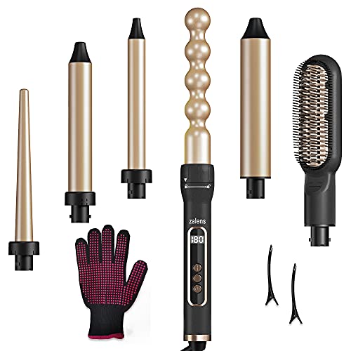 - ♥【6-in-1 Interchangeable Curling Iron Wand Set】 zalens hair curling iron set contains 5 different sizes of curling wands and a straightening brush. You'll enjoy different hairstyles from waves to tight curls, even straight hair