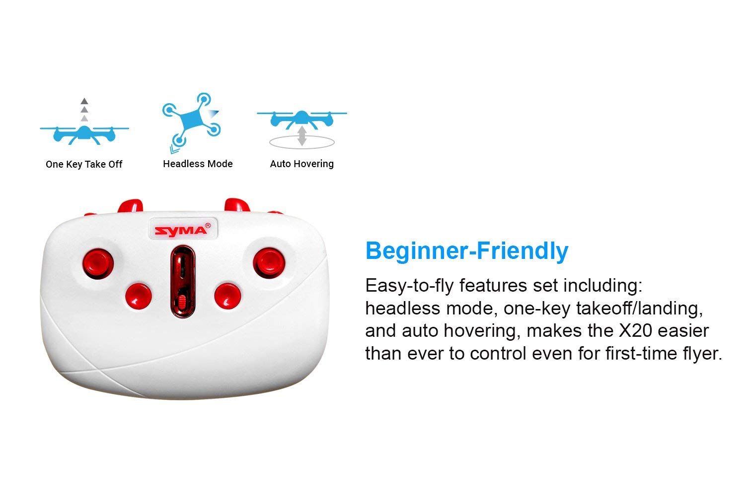 - Low-battery Protection: The indicator lights will flash in low battery status. Press one-key-landing to retract X20.