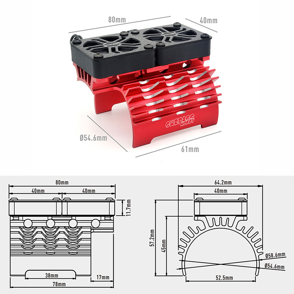Surpsshobby 55mm RC Motor Heatsink With 16000RPM Dual High Speed Cooling Fan for Rocket 5593 55113 1/5 scale Traxxas Arrma RC Car Motor