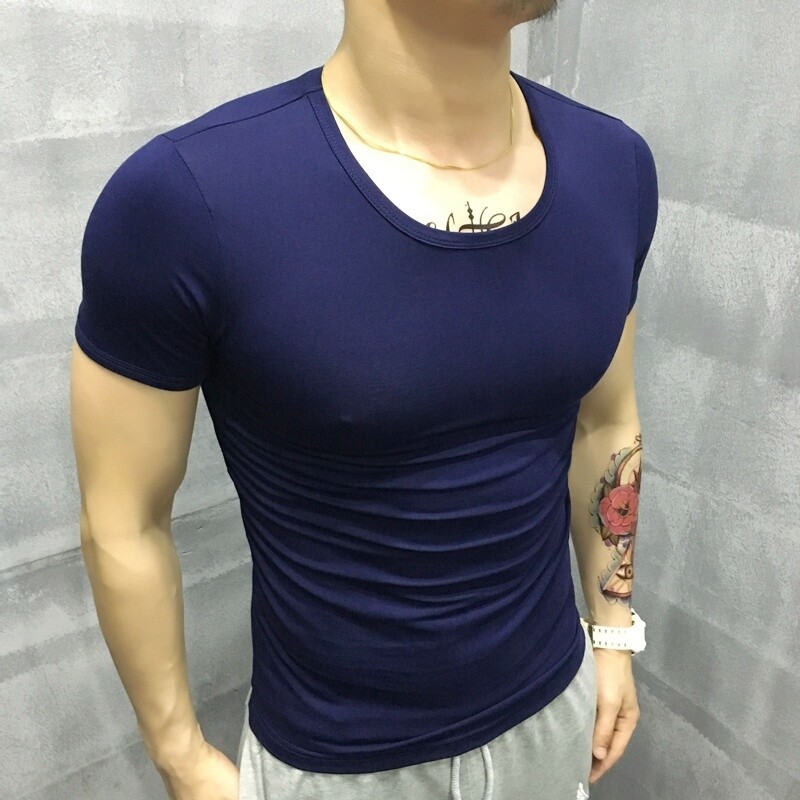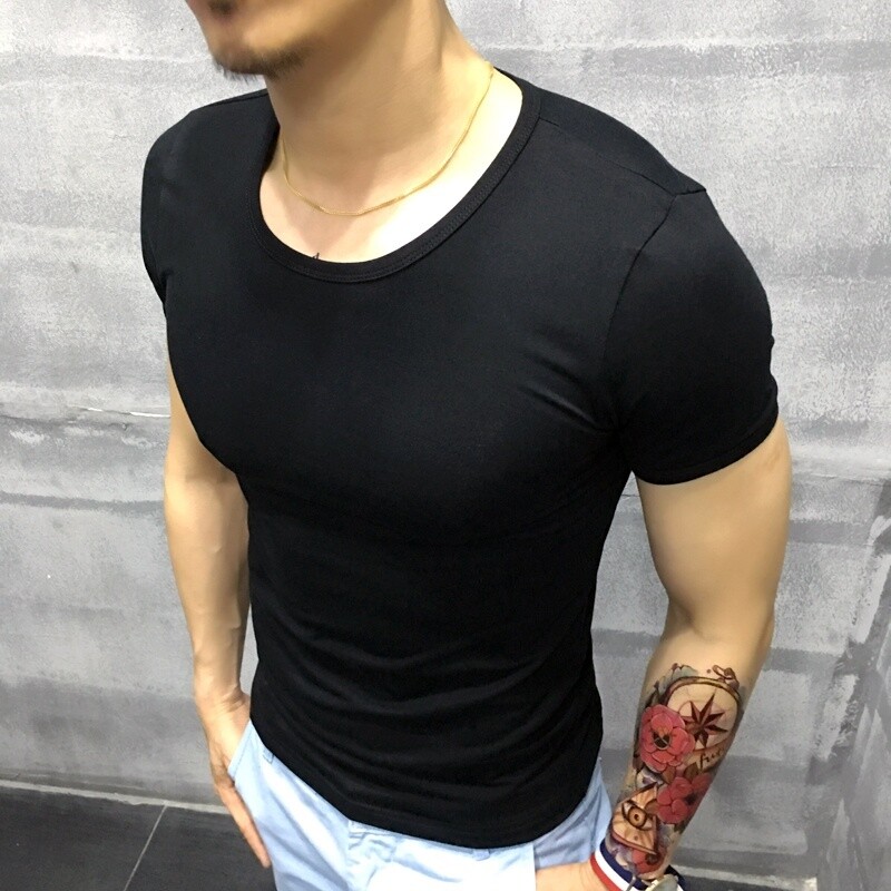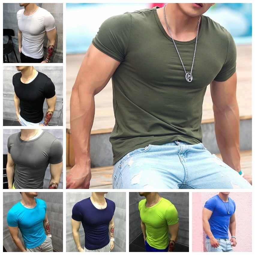 Men Gym Muscle Fit T-shirt Fitness Cotton Short Sleeve Casual Stretch Tops Basic