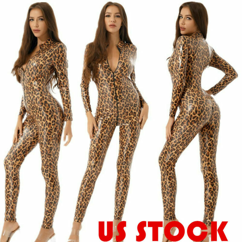 - Women’s one piece patent leather leotard bodysuit.