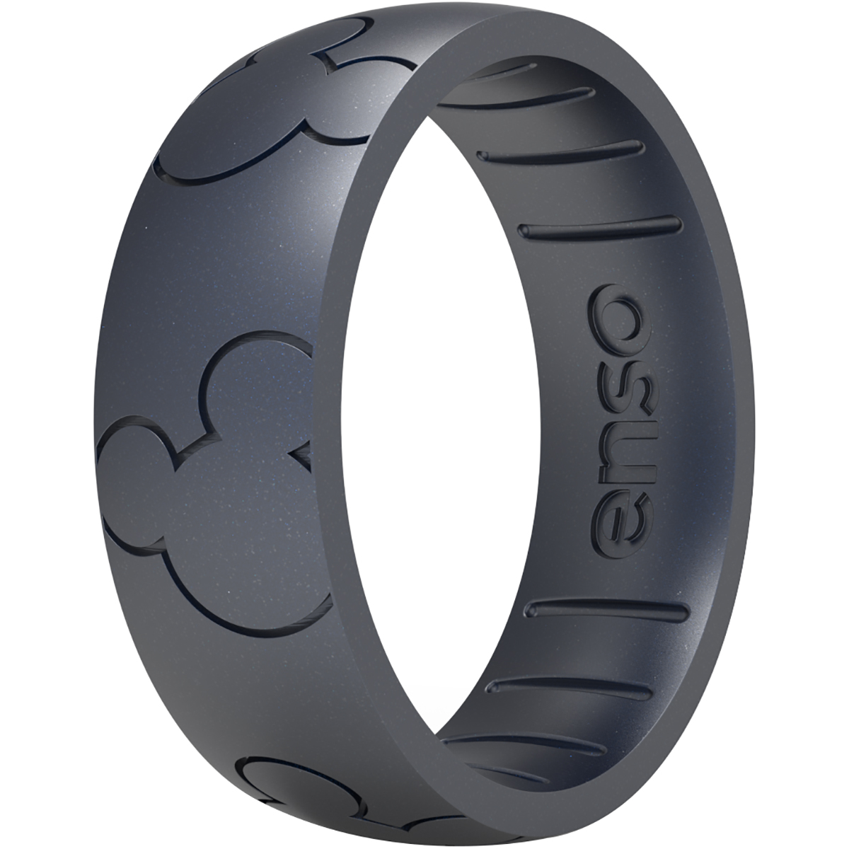 Sport the true original Mickey Mouse on your finger with the Enso Rings Mickey Mouse All Around Ears Classic Silicone Ring. Each ring is infused with real precious metals, combining the comfort and safety of silicone with a touch of timeless luxury. This beautifully designed silicone ring feels right and comfortable on the hand, unlike traditional, hard material rings. With silicone rings, you no longer have to risk finger-related injuries on the job. They help keep fingers safe with Anti Ring Avulsion Technology. This classic width ring has a width of 8mm and a thickness of 2.16mm.