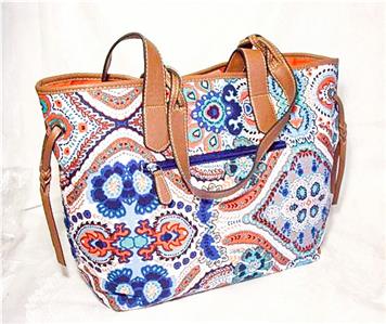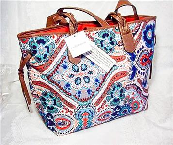 CROFT & BARROW GREEN RED BLUE BANANA PAISLEY TOTE PURSE SATCHEL HANDBAG $59