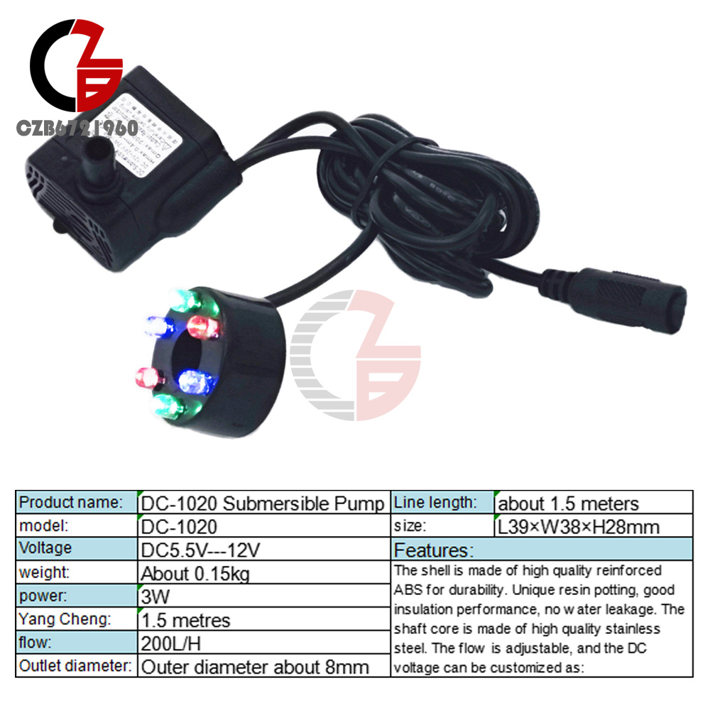 DC5.5-12V 3W 1020 with 6 perforated waterproof LED lights colorful light DC water pump *1