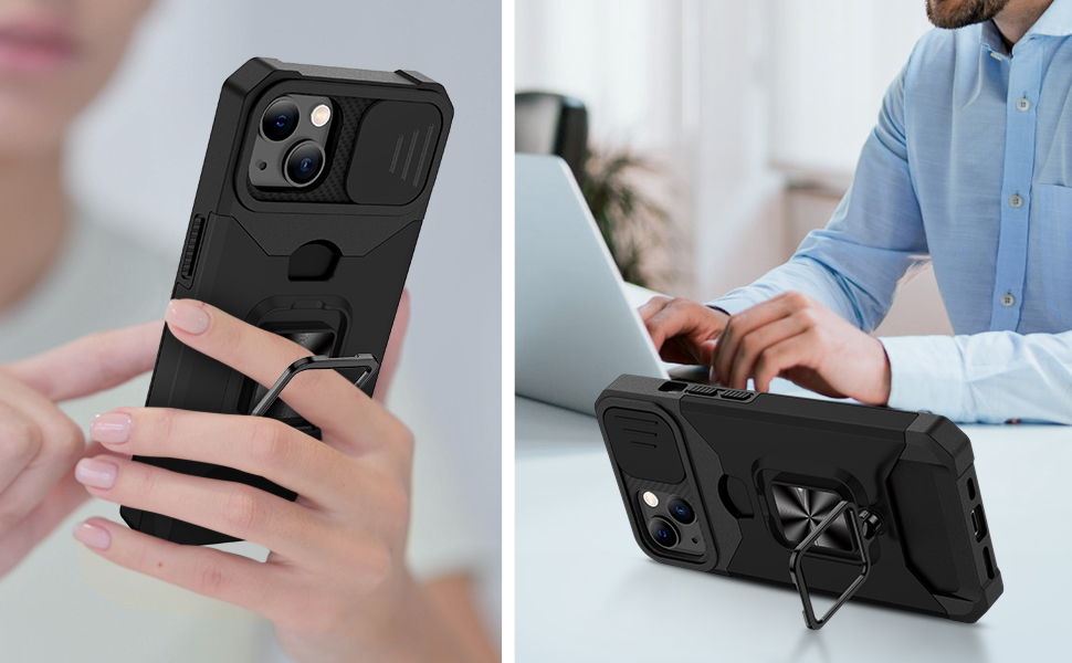 - 4 in 1 Armor Case - Design for Iphone 13 Pro Max/13 Pro/13/13 Mini/12 Pro Max/12 Pro/12/11/11 Pro/11 Pro Max/ 6/6P/6S/7/7P/8P/X/XR/XS/XS MAX case,The Armor Case with Rotate Ring Stand , Magnetic function, slide camera cover and Card Holder Slot(Note: You need to take off the outer layer and the case could support wireless charging).