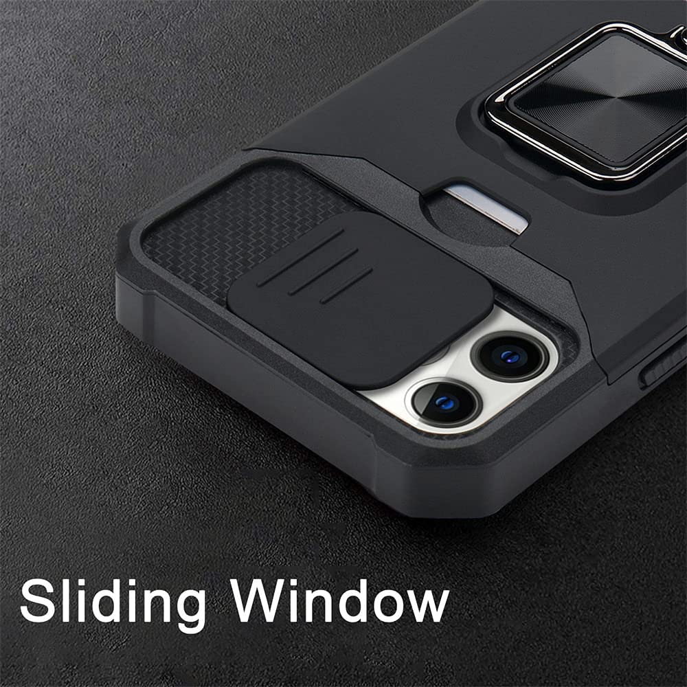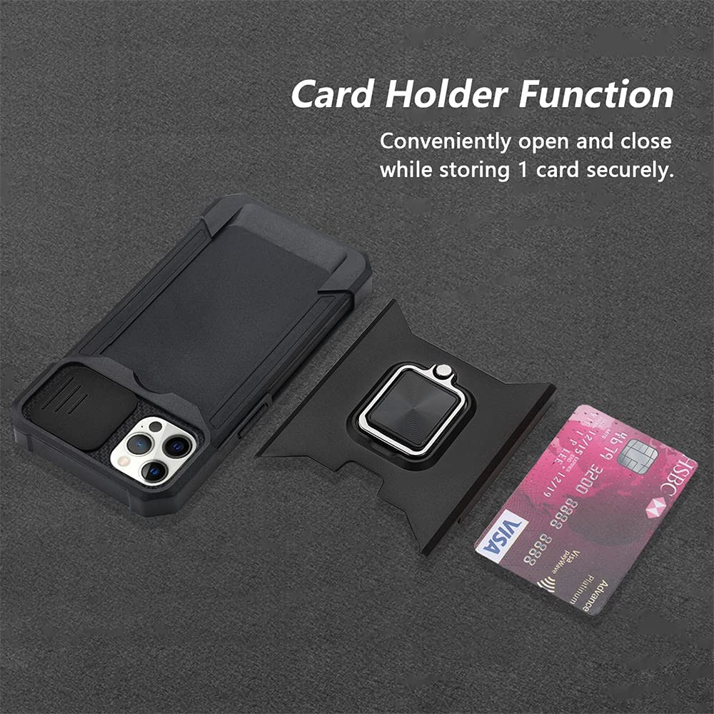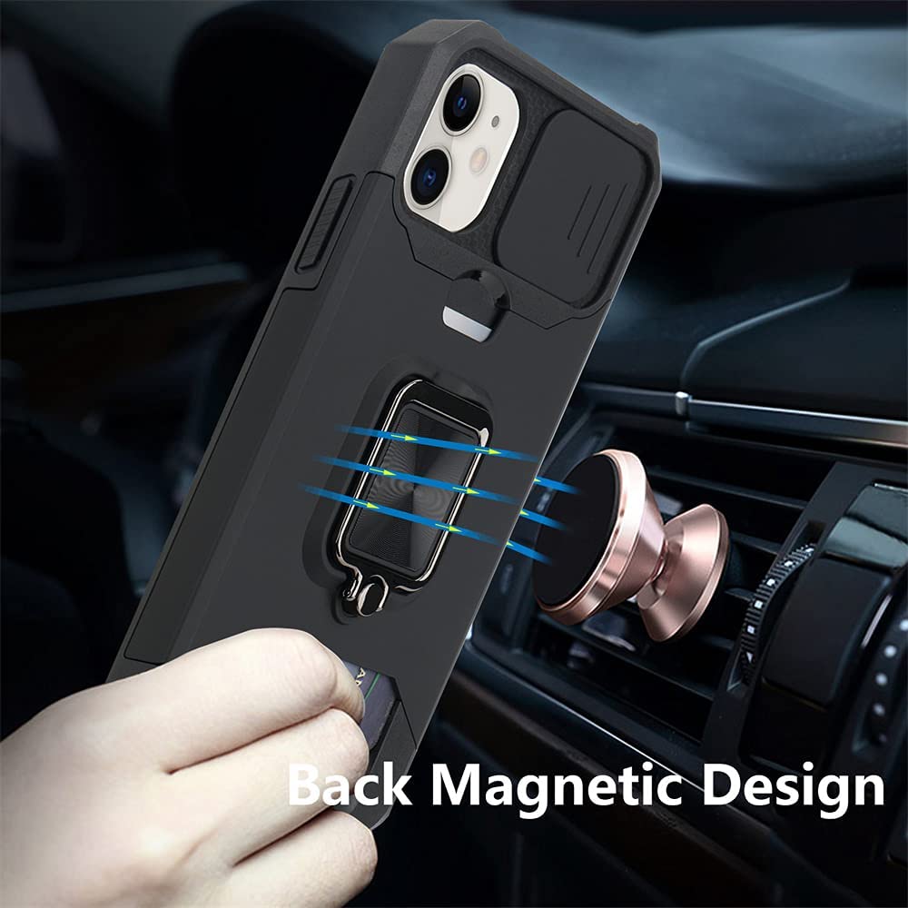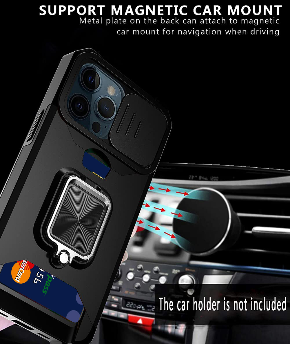 Armor Case Camera Cover & Rotate Ring Stand & Magnetic & Card Holder Slot - Black