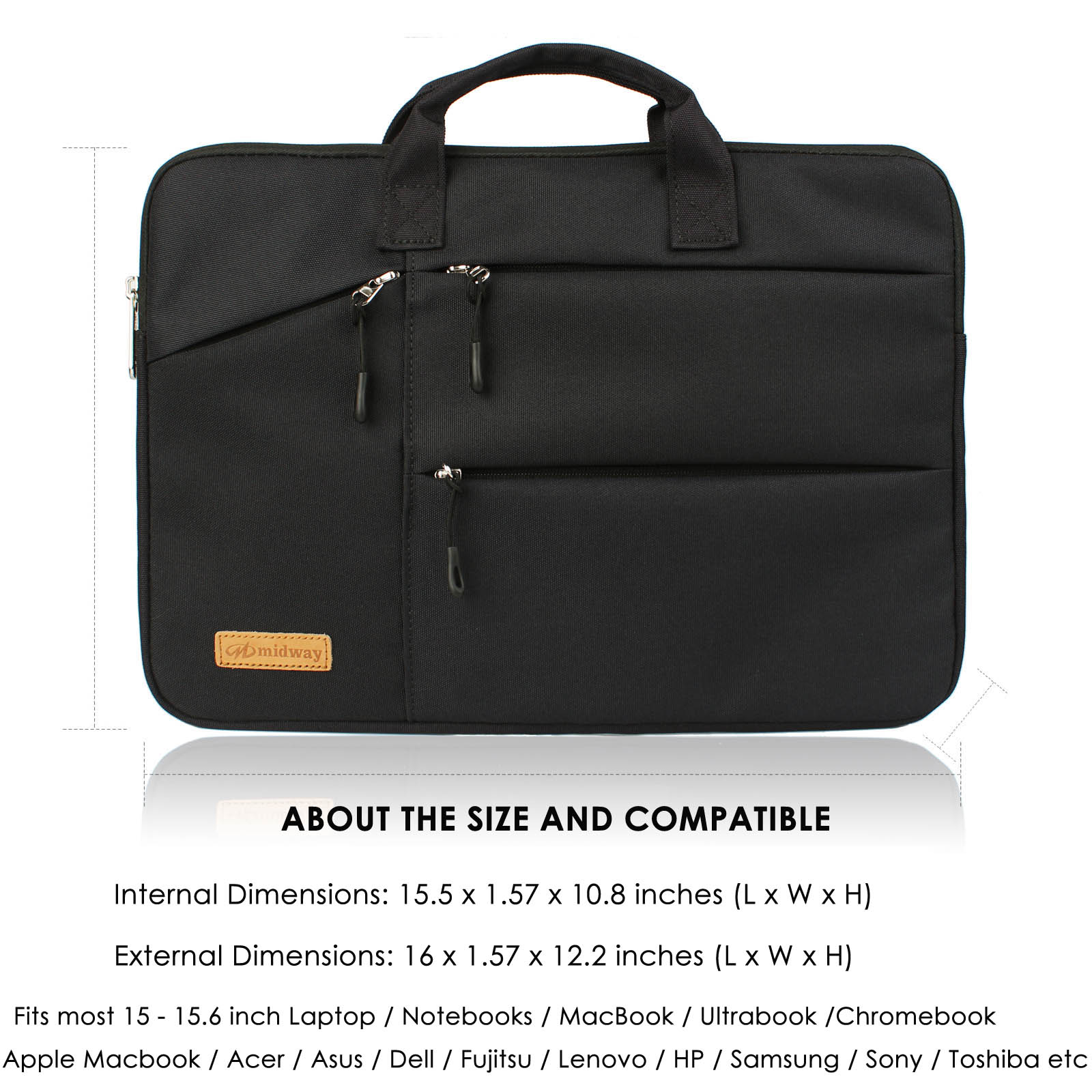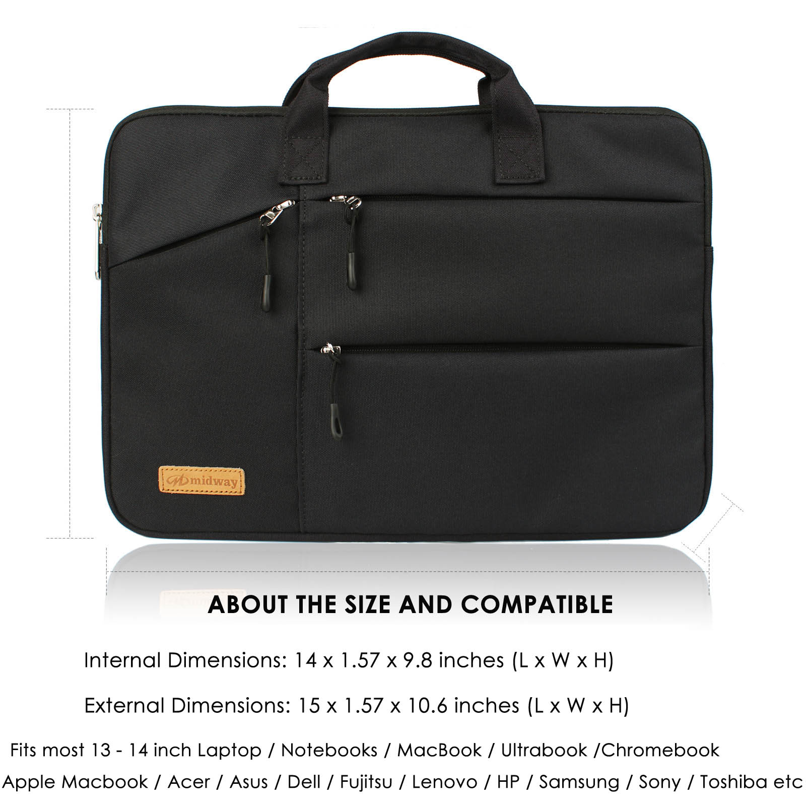 Smaller one: Internal Dimensions: 14 x 1.57 x 9.8 inches (L x W x H); External Dimensions: 15 x 1.57 x 10.6 inches (L x W x H). Fits most 13 - 14 inch Laptop / Notebooks / MacBook / Ultrabook /Chromebook ( Apple Macbook / Acer / Asus / Dell / Fujitsu / Lenovo / HP / Samsung / Sony / Toshiba etc.; Bigger One: Internal Dimensions: 15.5 x 1.57 x 10.8 inches (L x W x H); External Dimensions: 16 x 1.57 x 12.2 inches (L x W x H). Fits most 15 - 15.6 inch Laptop / Notebooks / MacBook / Ultrabook /Chromebook ( Apple Macbook / Acer / Asus / Dell / Fujitsu / Lenovo / HP / Samsung / Sony / Toshiba etc.