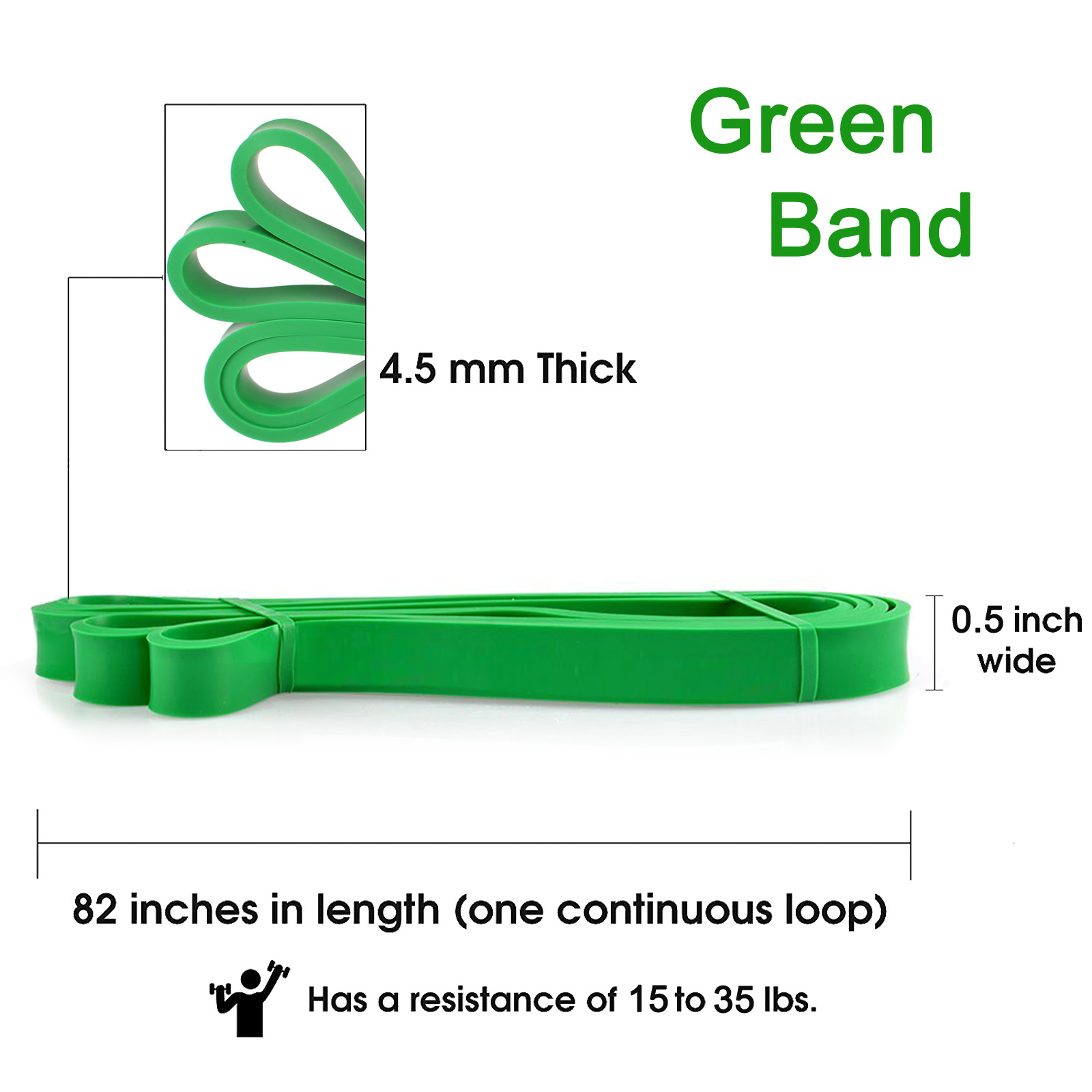- Here are the details of all the other bands we offer: #1 Red- 2 to 15 lbs of resistance, #2 Green - 15 to 35 lbs of resistance, #3 Black- 20 to 70 lbs of resistance