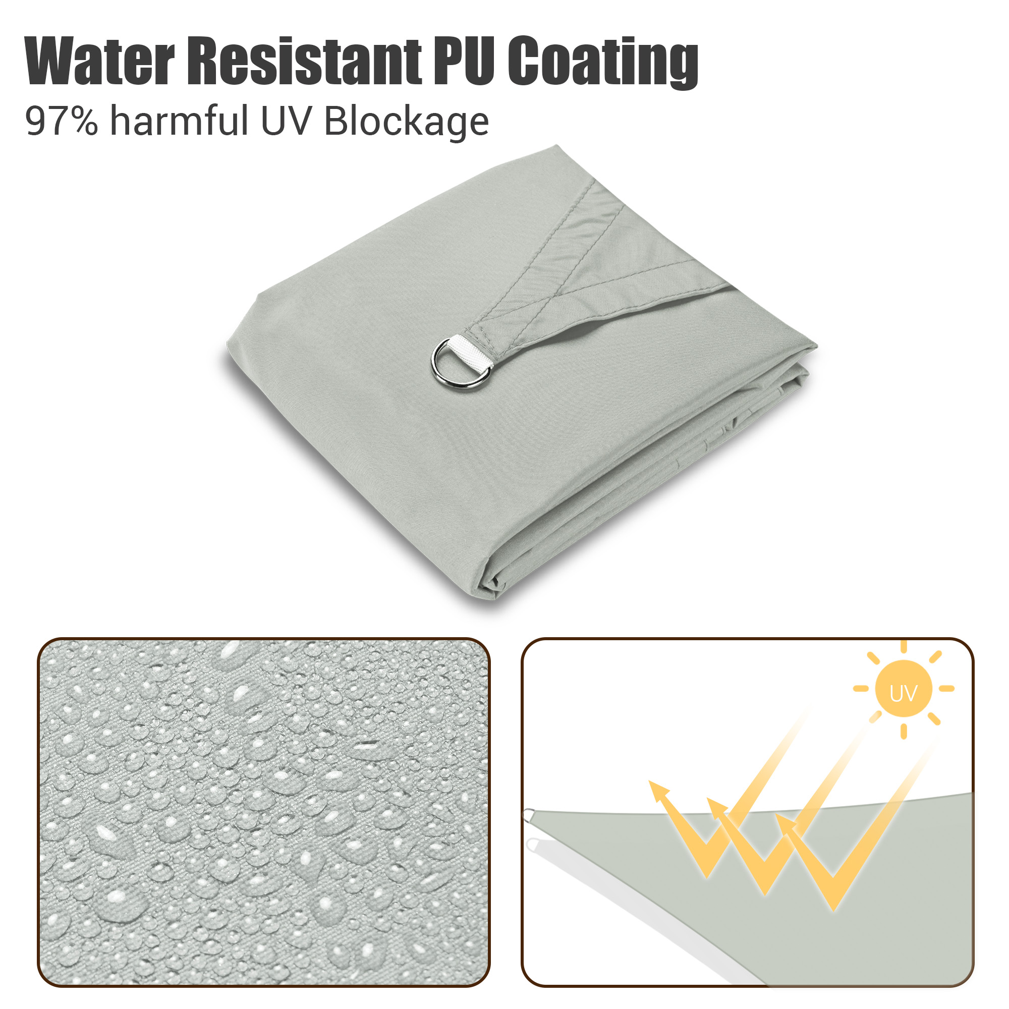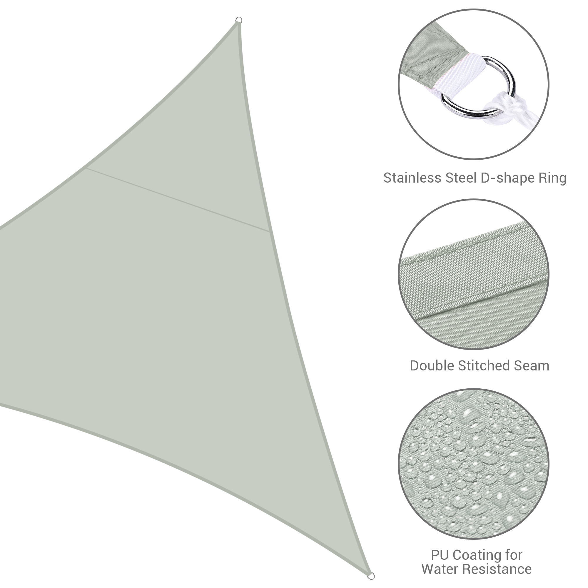 16 ft Triangle Sun Shade Sail, made of durable polyester fabric, is perfect for blocking harmful UV ray and offering cool shade in the outdoor. PU coating on surface is wear and water resistant. With stainless steel D-shape ring, it can be easily hung on patio, garden or pool.