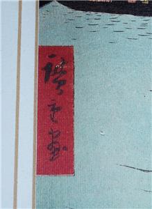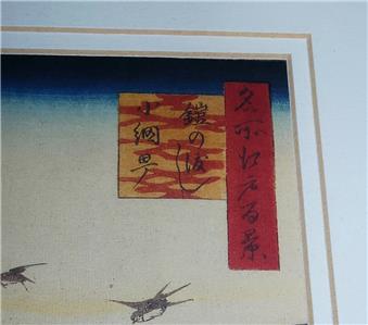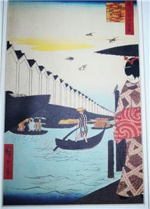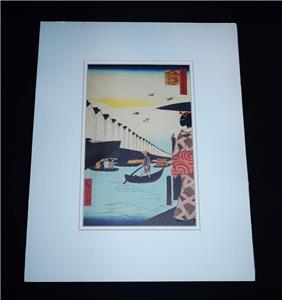 You have found the missing pieces to your art collectionn! Here is a matted print by Utagawa (Ando) Hiroshige called Yoroi Ferry. It is from the 100 Famous View of Edo 1857. 8" x 12.5" tall, it is matted to measure 16" x 20". Excellent pre-owned condition, no chips or cracks. Please see our Not Just China Store for more artwork.