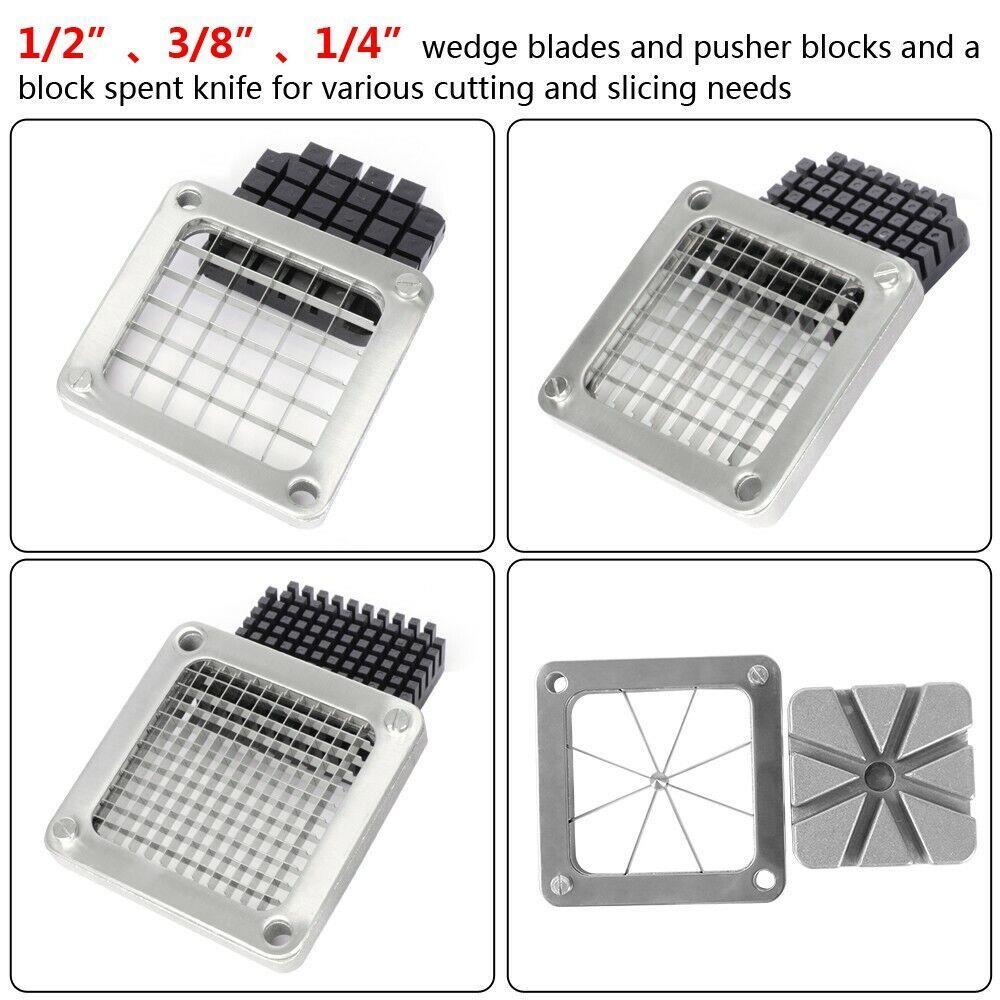 【4 Sizes Blades】There are 4 sizes of blades to choose. It can meet your various cutting need in daily life. The 1/4", 1/2" and 3/8" & 8-wedge blades are ideal for making different sizes of French fries and cutting vegetables such as potato carrot and cucumbers.