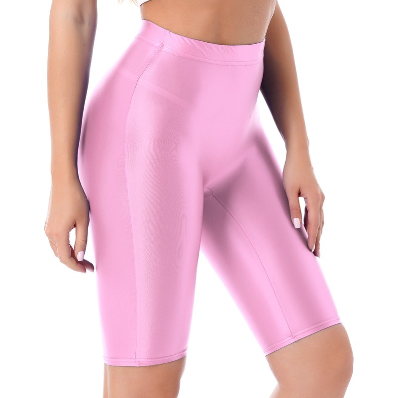 Womens Glossy High Waist Shorts Elastic Waistband Short Leggings Sports Bottoms.