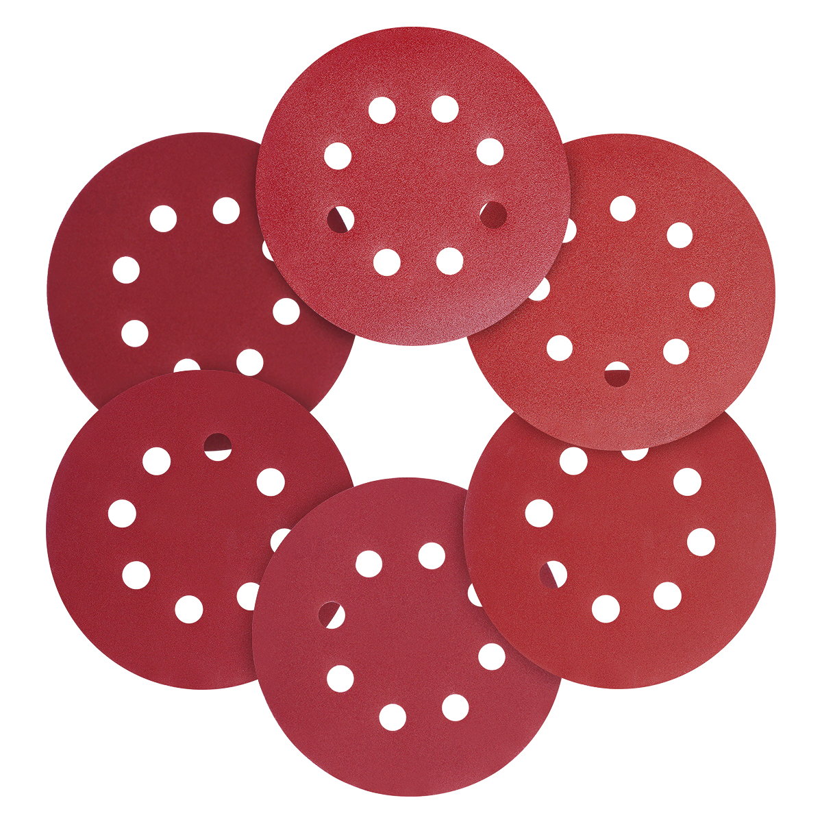 Open-coat, double resin-bonded aluminum oxide abrasive provides long life and fast material removal mainly on wood, also applies to metal, drywall, fiberglass, or painted surfaces. The hook and loop back with long silk flannelette makes disc replacements easy, quick and not fall off when installed in use. This sandpaper disc features a heavy duty D-weight backing to withstand tearing and enhance strengththis. 8-hole pattern enables efficient dust extraction. Fits Bosch and other 5'' diameter random orbital sanders with hook-and-loop mounting.