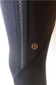 - Womens Lululemon Black Side Leg Mesh Cut-Out Capri Leggings 6 *