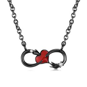 925 Sterling Silver Black Rhodium CZ Infinite Red Heart Small Pendant Necklace