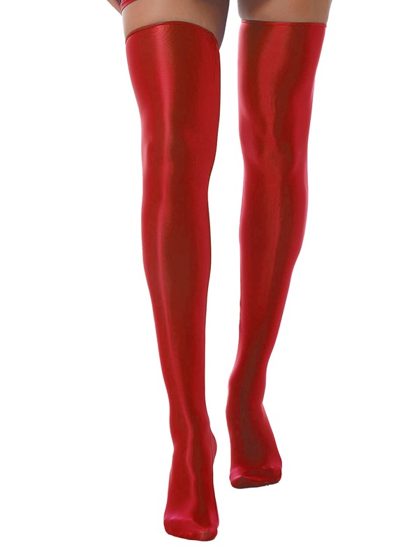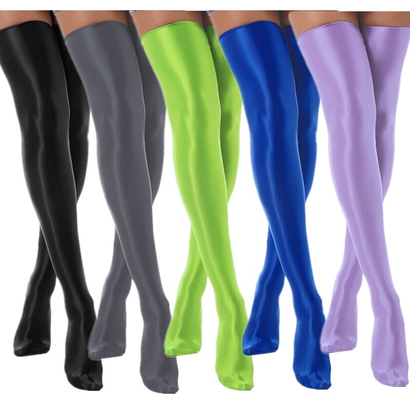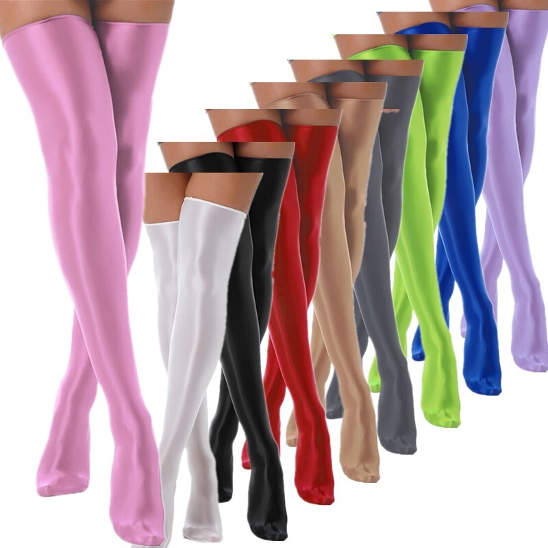 1 Pair Womens Glossy Thigh High Stockings Solid Color Stretchy Socks.