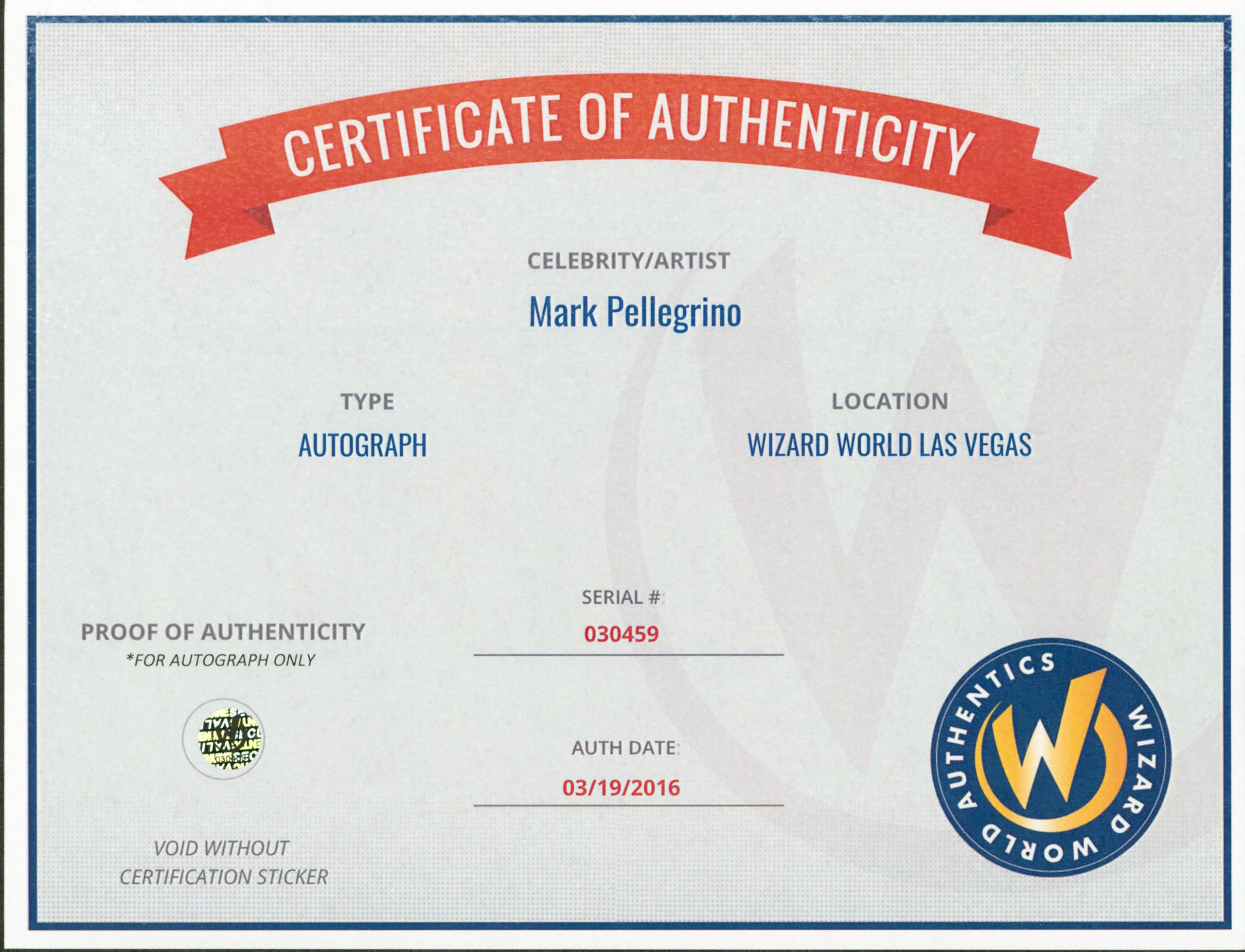 This Autographed 8x10 Photo has been Personally Signed by Mark Pellegrino of Dexter. This item is 100% Authentic to include a Certificate of Authenticity (COA) / hologram by Wizard World Authentics. A Wizard World Authentics representative was present when this item was being signed, the date of the signing is notated on the COA. We have multiples of this same item. While the photographs are representative of this item, the size, placement and strength of the signature may vary. Each item is hand signed, therefore, each autograph is unique.