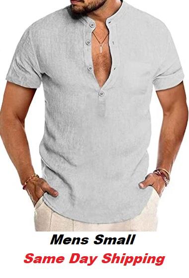 Men Cotton Linen Henley Casual Short Sleeve Hippie T Shirt Beach Yoga SMALL