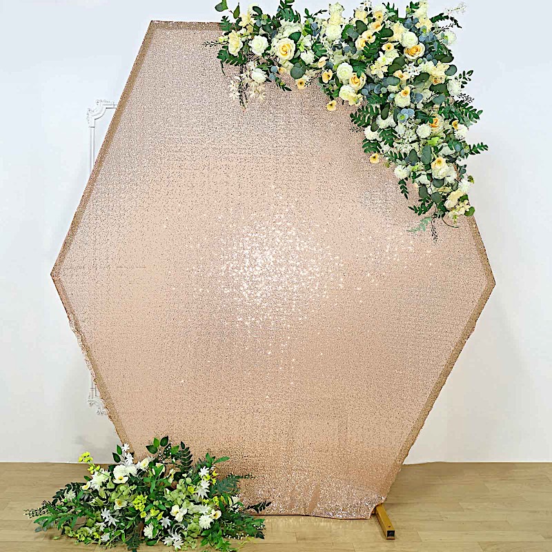 This sequin hexagonal backdrop stand cover will help you set the scene for your parties, weddings, birthdays, bridal showers and events. This hexagon backdrop cover will add sparkle to your hexagon backdrop stand or wedding arch decorations. Perfect for creating a customized party banner, photo booth decor, background for a video shoot or addition to your digital photography studio setup. The possibilities are endless! Match it with your LED lights, balloons, garlands and flowers to set the mood for your special occasions and make your party one to remember.