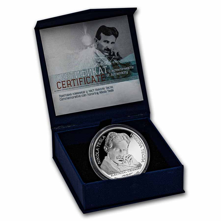 This coin would be a great addition to any coin collection. Own the first release of this exciting new bullion series minted by the Serbian Mint by adding this stunning 1 oz Silver Nikola Tesla Proof coin to your cart today!