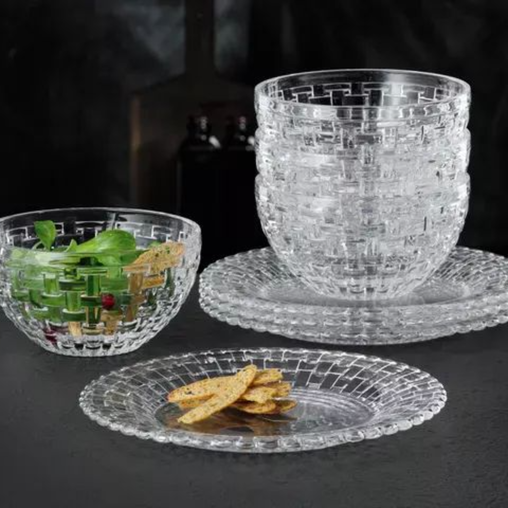 This set contains of 2 pieces NACHTMANN Bossa Nova Bowl round 6" bowls. The brilliant machine-made bowls of the popular glass collection Bossa Nova add sparkle to every day as well as festive table decorations. The bowls are ideal to serve small amounts of cold dishes. Bossa Nova tableware adds interest to the table decoration with the same cool sensibility as the dance for which it is named. As all NACHTMANN crystal this item is dishwasher safe
