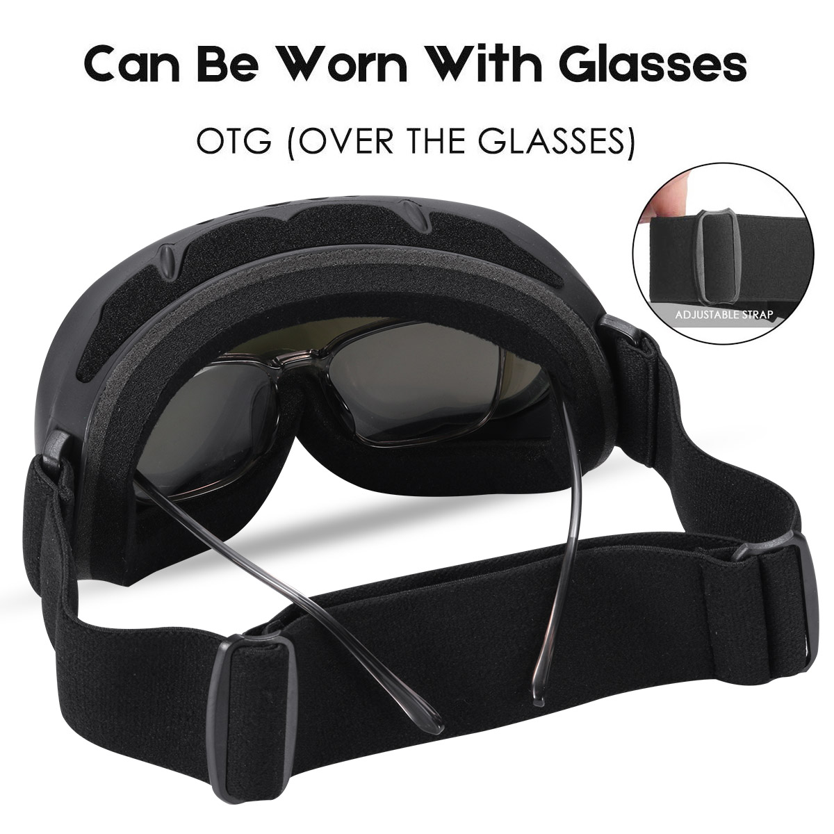 - OTG (OVER-THE-GLASSES) DESIGN - The Ski Goggles PRO features an OTG design that lets you wear your glasses under the goggles. All lenses are ANTI-FOG COATED, ANTI-GLARE & offers 100% UV400 PROTECTION.