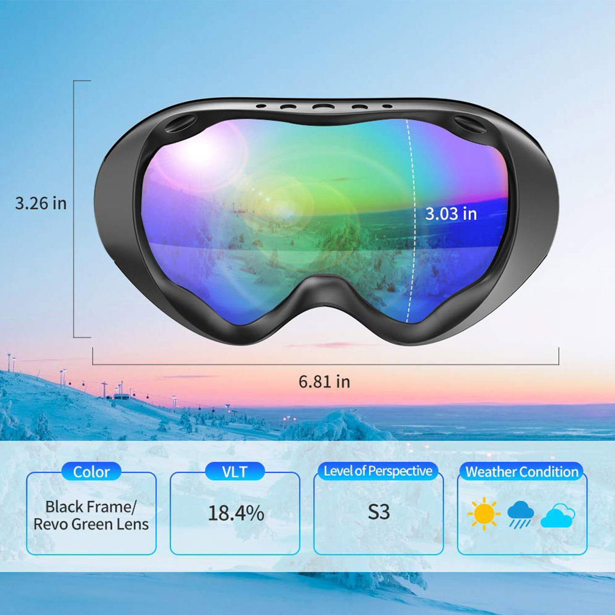 - SUPER COOL DESIGN FOR MOST PEOPLE - Our Ski Goggles come with fresh new cool shape & 2 stylish colorss: MERCURY and GREEN, absolutely with class! It is time for you to be the star in the ski resort, and wear on these unique goggles for more functions with your friends and family! These goggles can be the best gifts of Christmas, New Year and Valentine in this Winter!