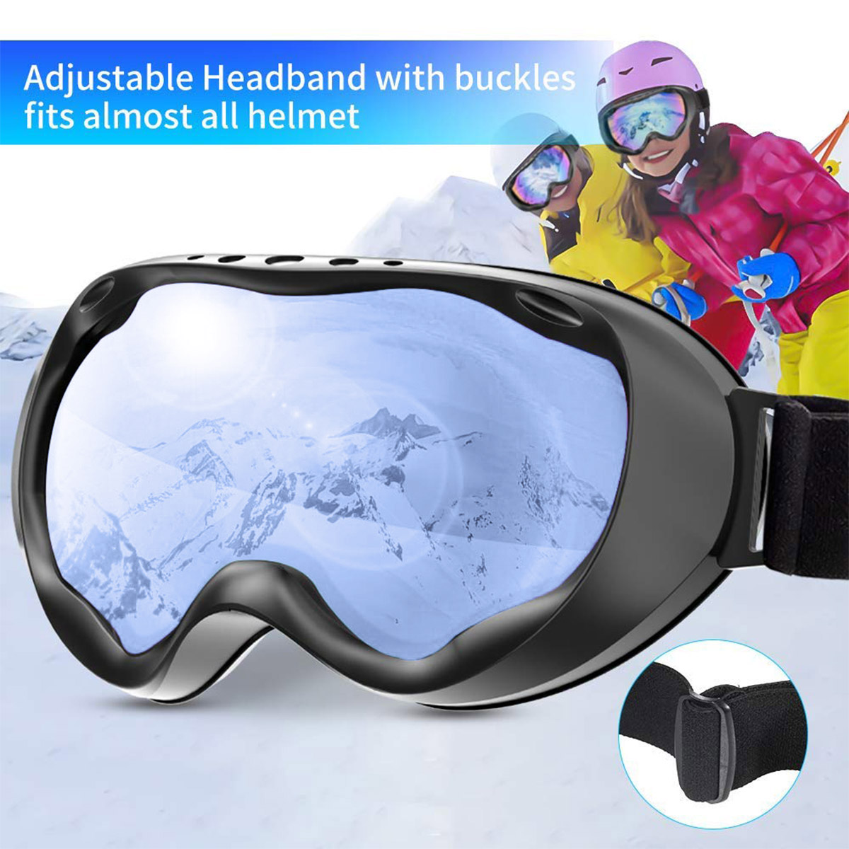 - UNIVERSAL HELMET COMPATIBILITY - Extra long elastic strap ensures GREAT HELMET COMPATIBILITY with all helmets. It makes these the perfect goggles suitable for both men, women & youth, also suited for most ages and head sizes.