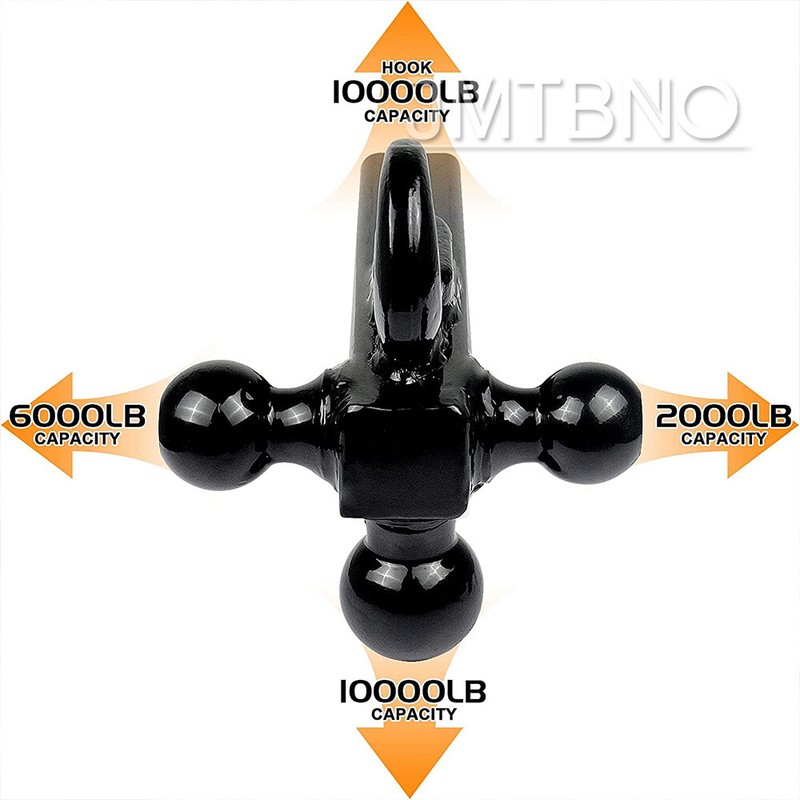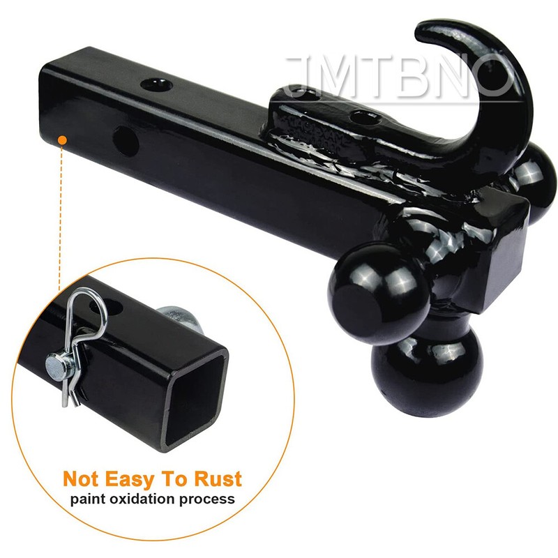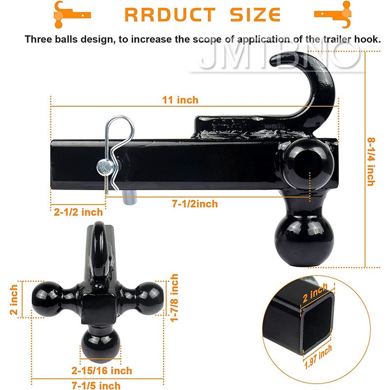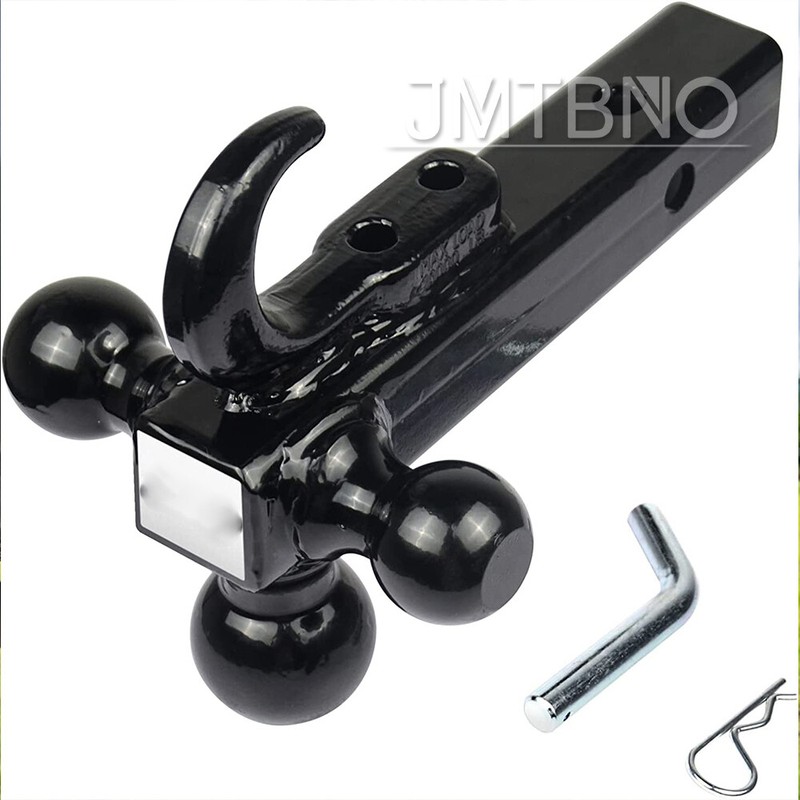 Note: Use 5/8 Inch Hitch Pin Kit or Lock ( not included) The tri ball hitch with hook 7-1/2 inches Length Hollow Shank to extend trailer receiver setup for truck, pickup, tractor with 2 inch standard hitch receiver or drawbars.