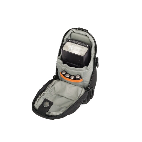 Our "spring-loaded" flap design on this convenient accessory pouch keeps it partially and securely closed while you work. Its sloped shape speeds access—allowing you to grab a flash, radio or other needed accessory while you work an event or cover an important assignment. Its streamlined design offers freedom of movement. Key details keep things flexible: a built-in All Weather AW Cover™, a SlipLock™ attachment tab, an adjustable/removable shoulder strap, YKK zippers with large pulls, and an interior pocket.