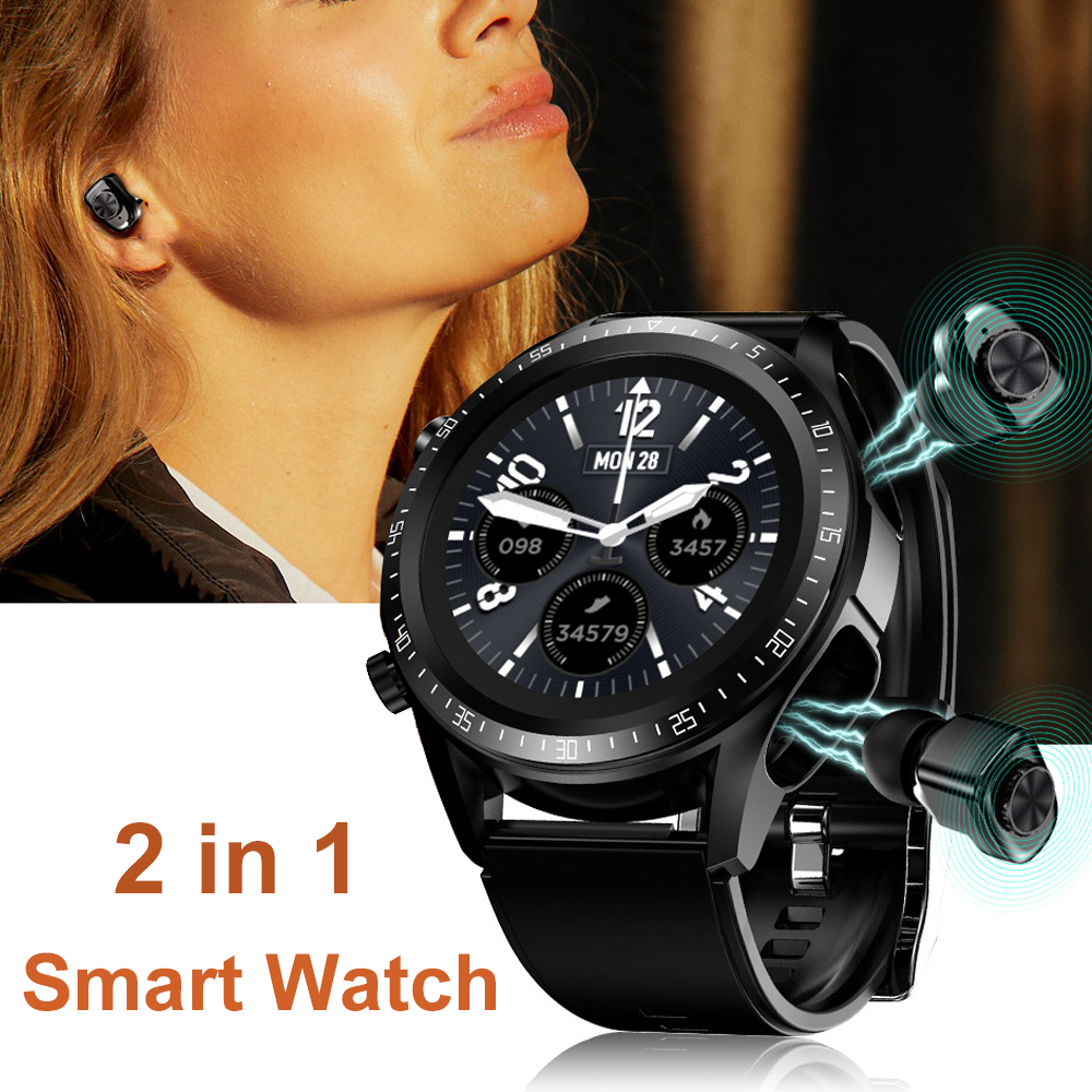 1. 2-in-1 Design: This is not only a watch, but also a headset box, which can be charged directly by the watch. After connecting the watch to the phone, the earbuds will also operate automatically. You can use the earbuds to listen to music at any time.