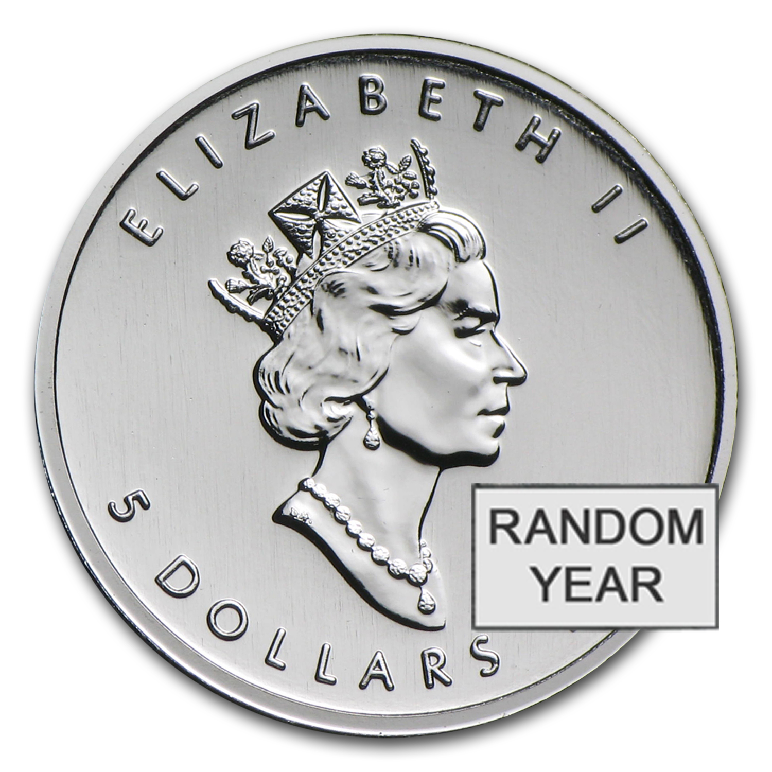 • Obverse: Shows the right facing profile of Queen Elizabeth II, along with the year and $5 face value.