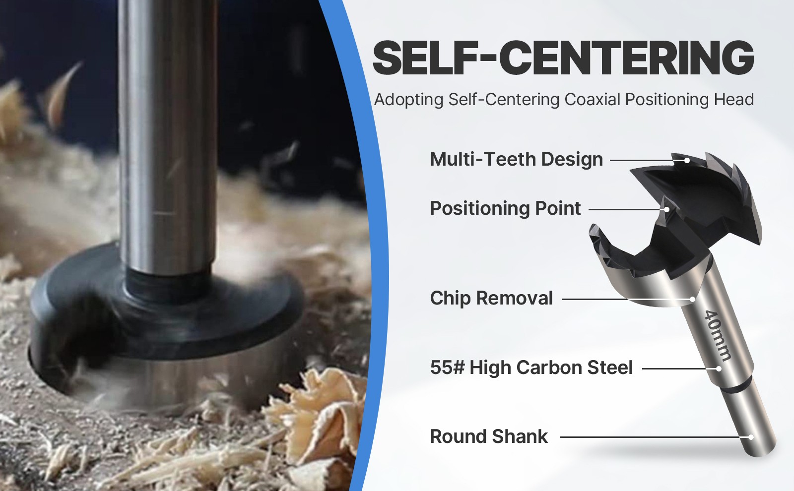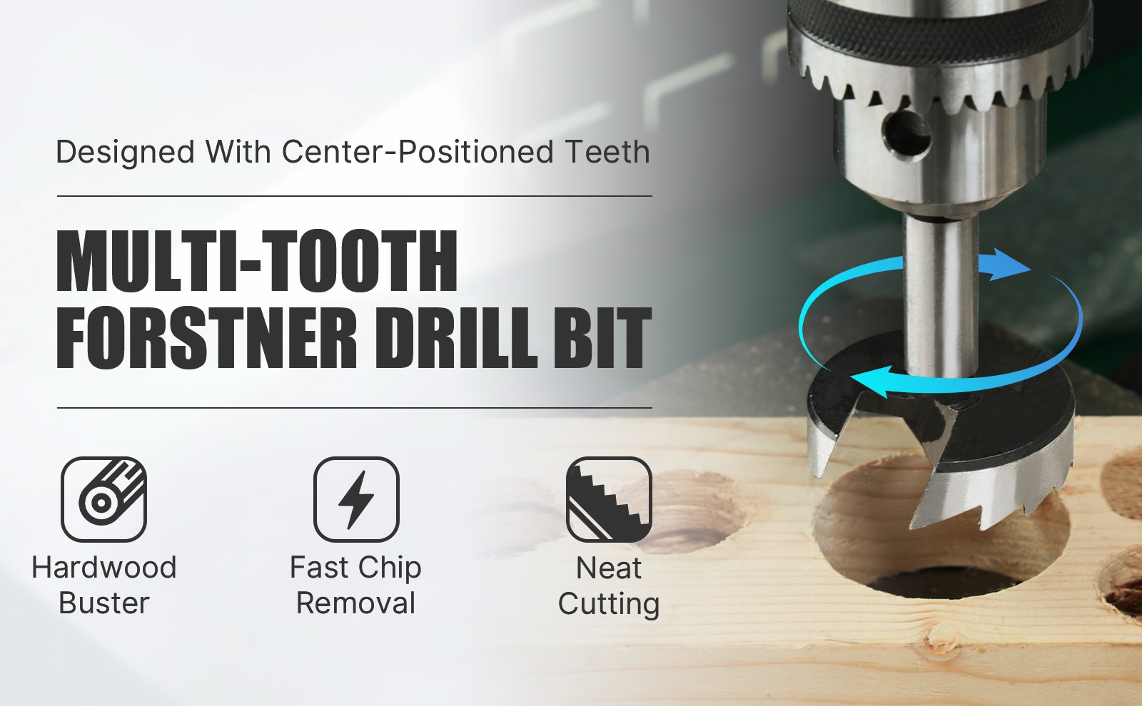 Product description Features: The use of advanced technology manufacturing, high-quality materials, long service time. Drill holes neat, smooth, no broken edge, will not produce tremor phenomenon. Incision resistance is small, improve the drilling speed, chip removal easily. Can be used for a variety of wood, wood products, plastics, plywood and other materials openings. Easy to install, easy to use, only need to be installed in the ordinary hand drill can be used. Work noise is small. Type: Forstner Drill Bit Material:60#High Carbon Steel Blade type: arc edge Size: 6mm(1/4''), 10mm(2/5''), 12mm(1/2''), 15mm(19/32''), 16mm(5/8''), 18mm(23/32''), 19mm(3/4''),