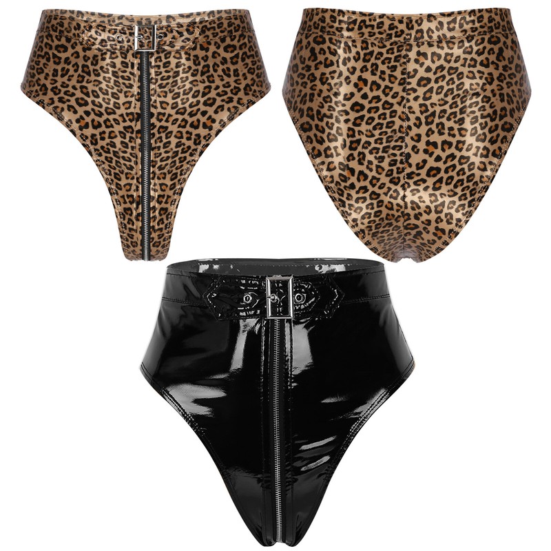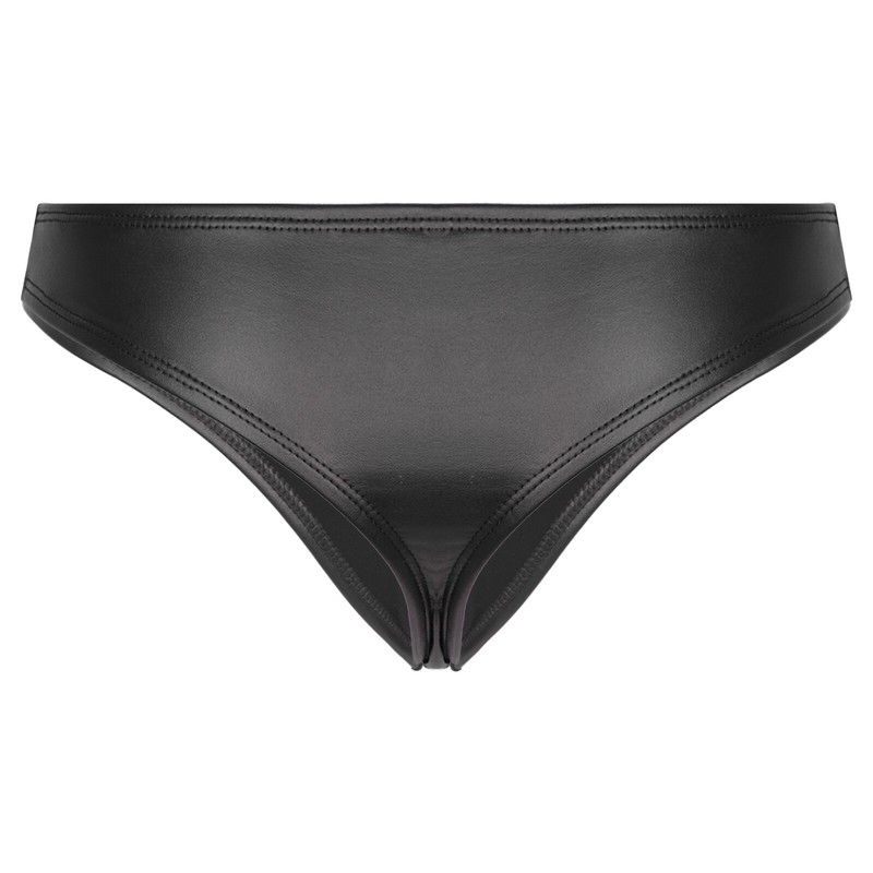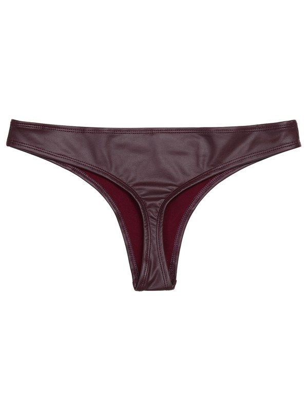 Womens Low Rise PU Leather Thong Underwear Solid Color Briefs Panties.