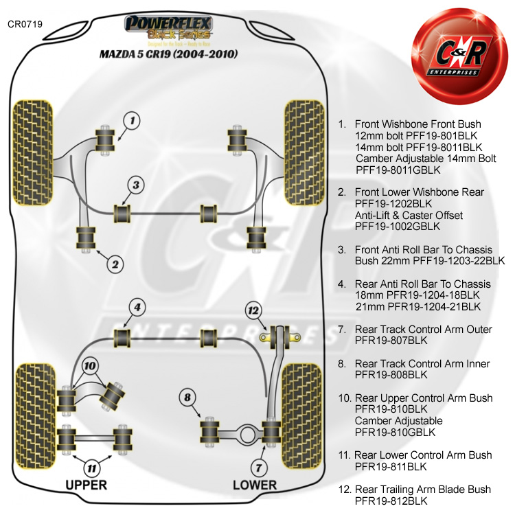 Powerflex schwarze vordere untere Querlenkerbuchsen hinten für: Mazda 5 CR19 (2004 - 2010)