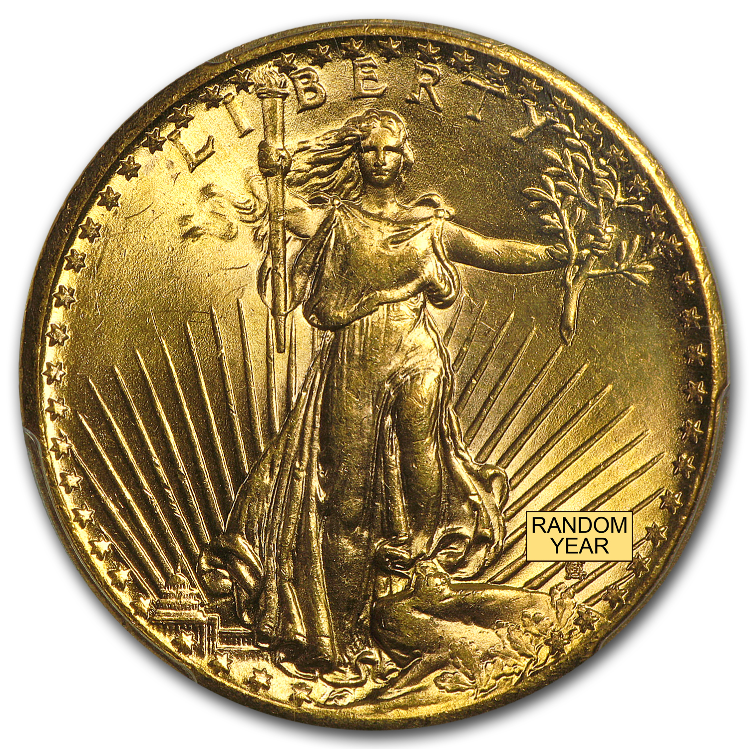 Dates on these random year St. Gaudens Double Eagle coins will be of our choosing and may or may not vary, determined by stock on hand.