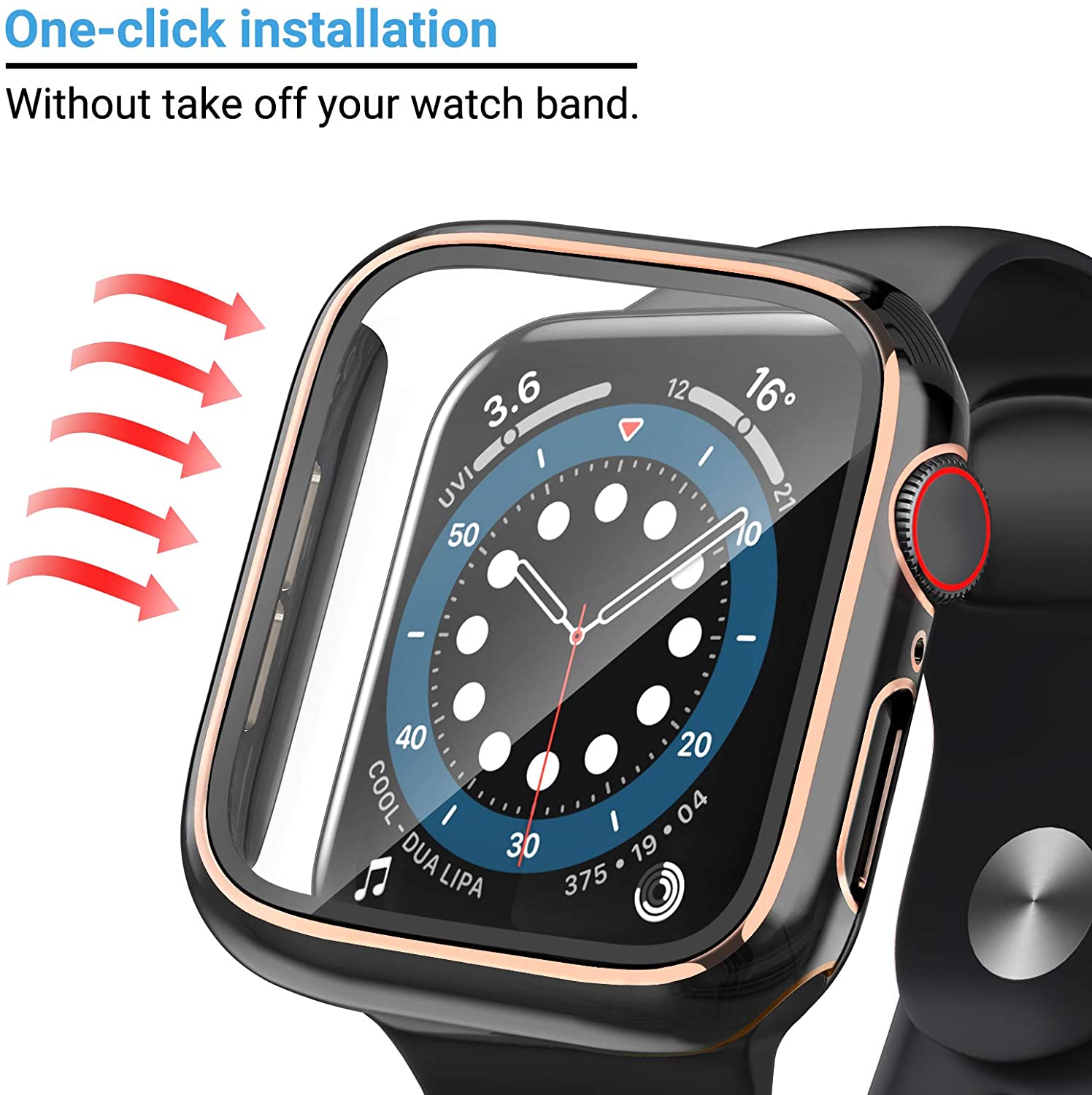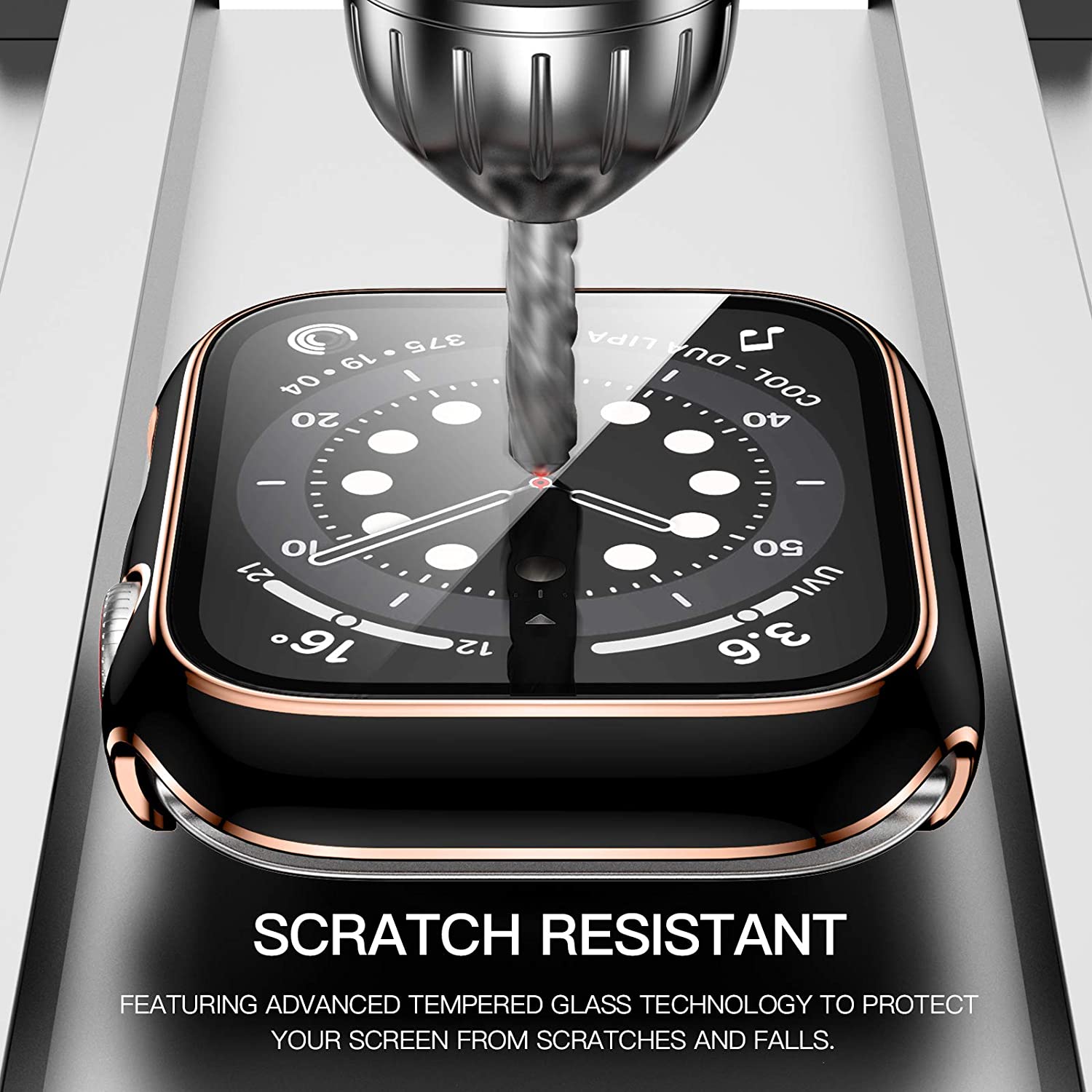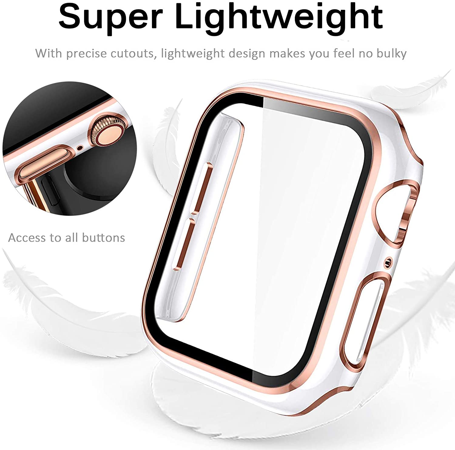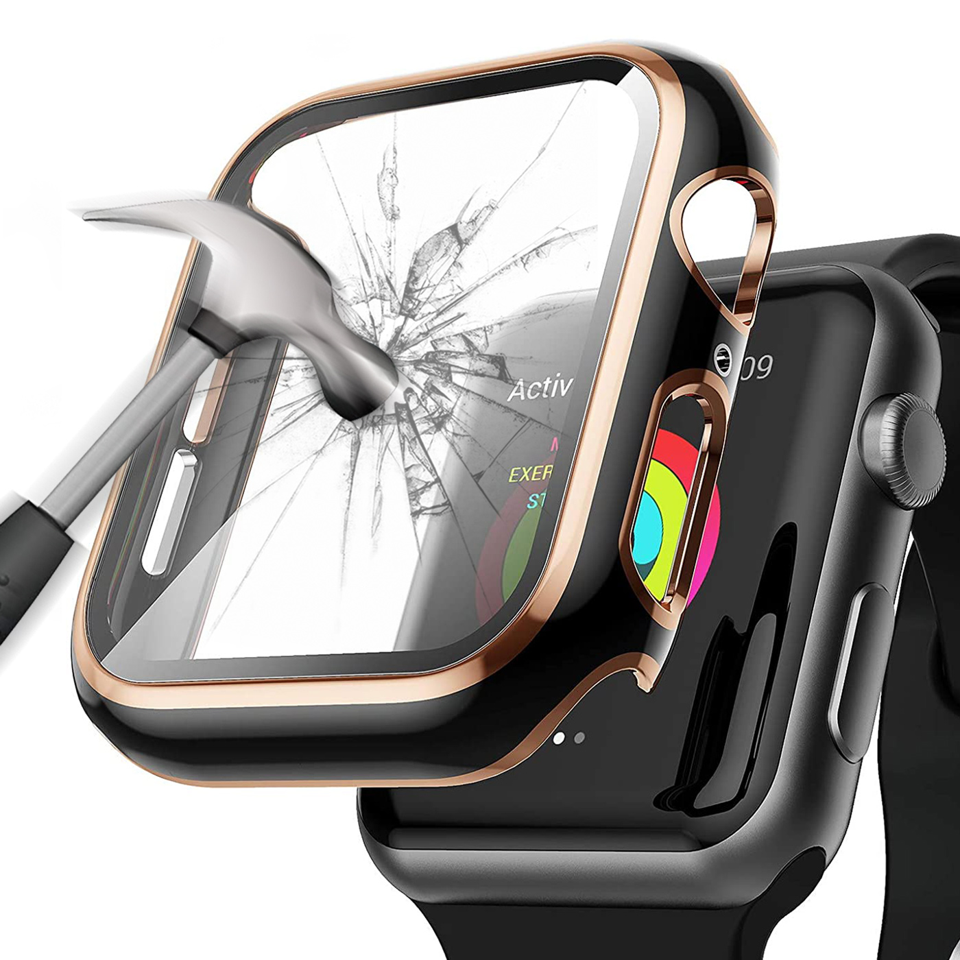 - Shockproof And Scratch Resistant - The double 9H tempered glass and premium quality hard PC for 360-degree full protection for your iwatch. No Fear of collision, scratches, daily wear, accidental drops and bumps even in the harsh environment, so durability.