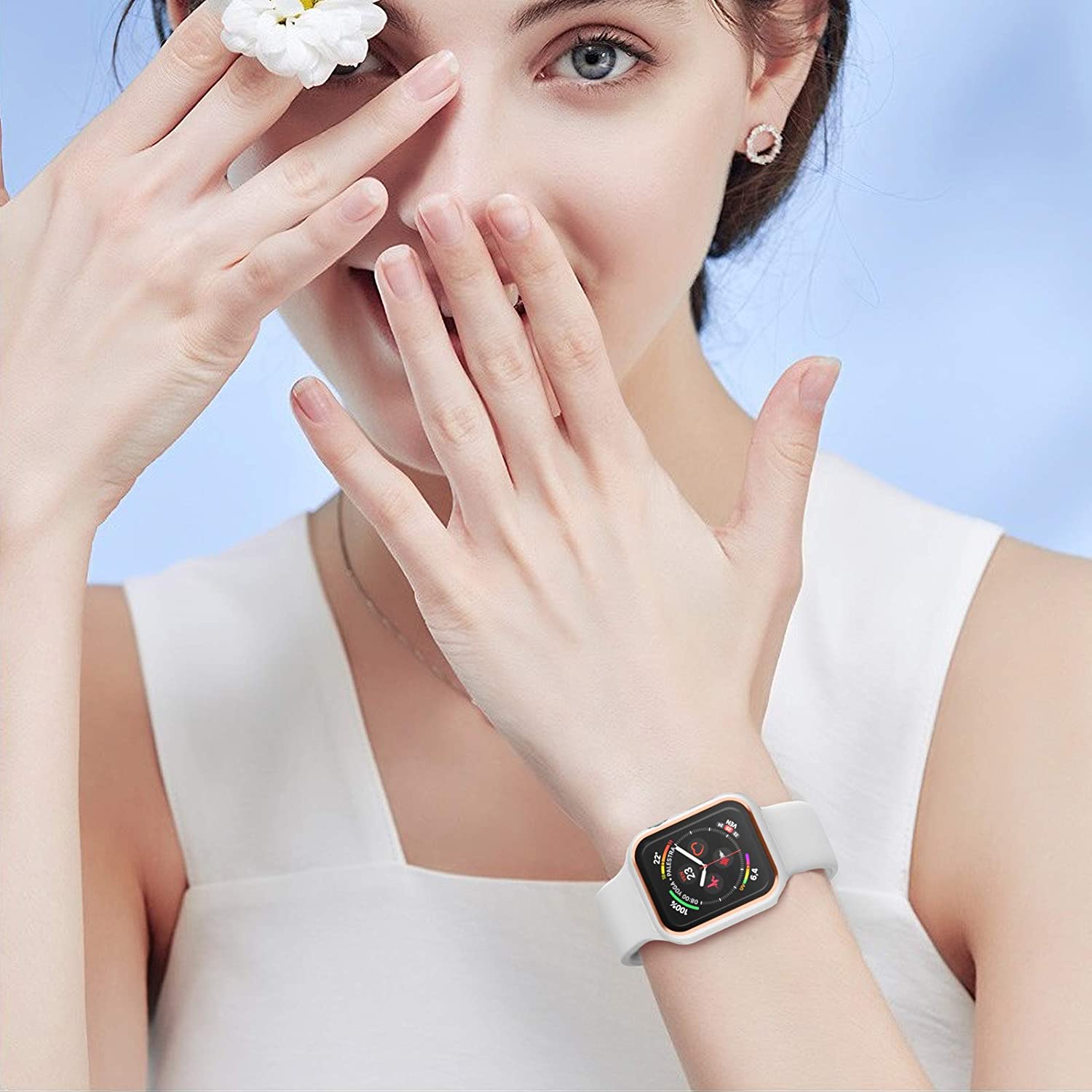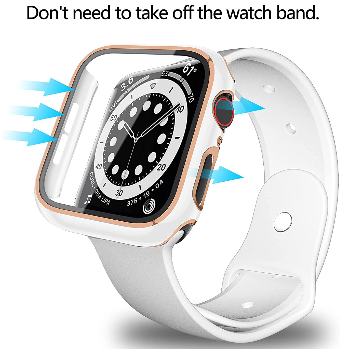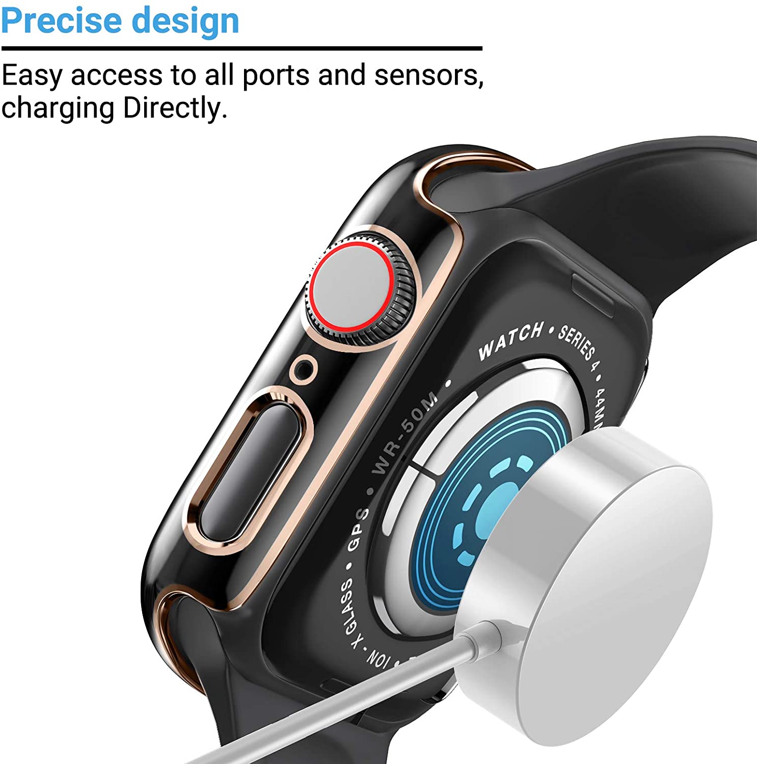 - Compatible Models - Perfect accessory case with screen protector created for Apple Watch 44mm Series 6/ 5/ 4/ SE. The accurate back hollow of the protective case makes the iwatch directed charging with case on, don’t need to take off the case.There are two colors, black and White. Great for outdoor sports / business / parties / shopping /gifts ect. No age limited.