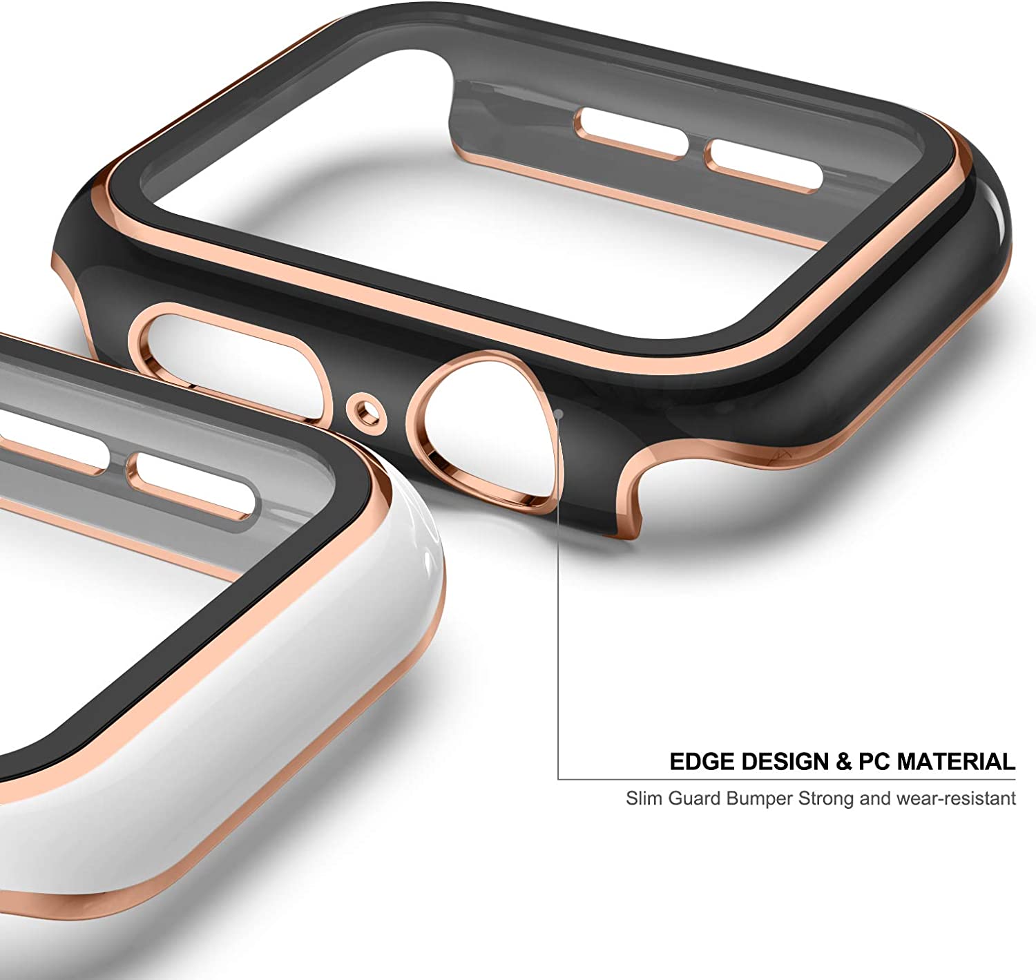 - Fits Apple Watch Series 6/ 5/ 4/ SE 44mm Hard PC built Glass Film (Black + White)