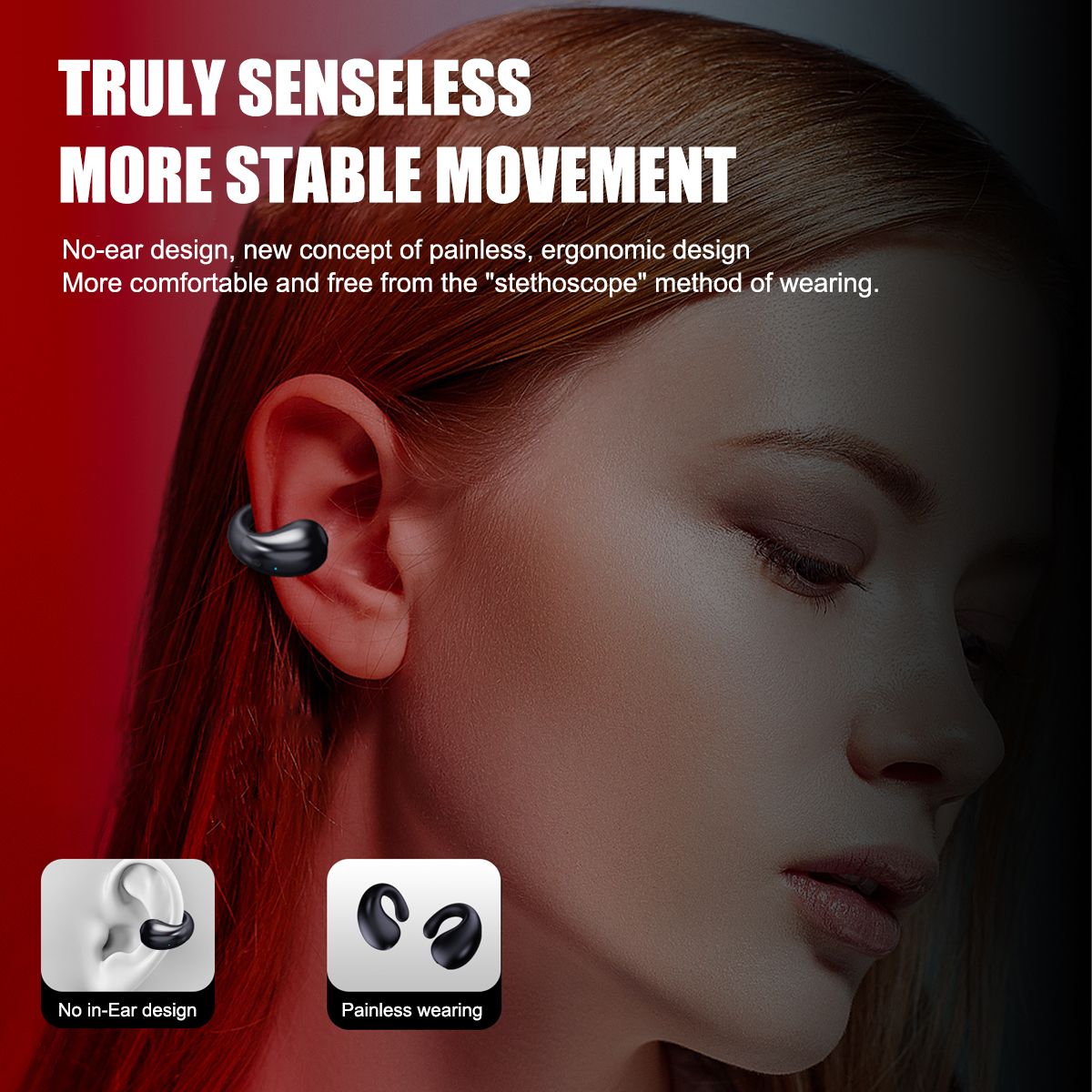 1) senseless clip ear headphones, comfortable to wear, long wearing no pain, clamp the ear firmly, wildly flinging not to fall off