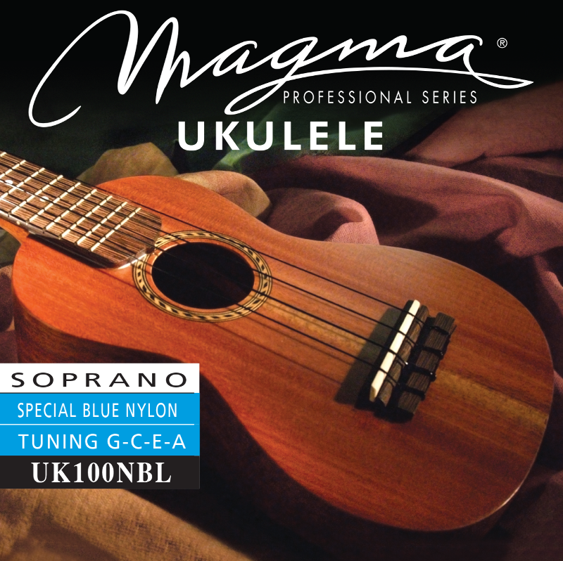 Magma Ukulele strings are made with high quality materials that provide for brilliant sound, rich tone and perfect intonation. They are offered in five different sets: 1) unique microwound strings of exclusive design to enrich the sound quality, 2) perfectly calibrated clear nylon strings, 3) black nylon strings, 4) "nylwhite" special synthetic material strings and 5) black light active fluorescent nylon strings