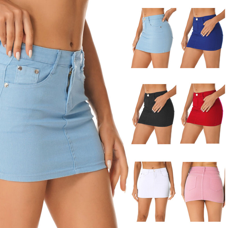 Women Fashion Stretchy Low Waist Pencil Skirt Solid Color Elastic Waistband Bodycon Miniskirt.