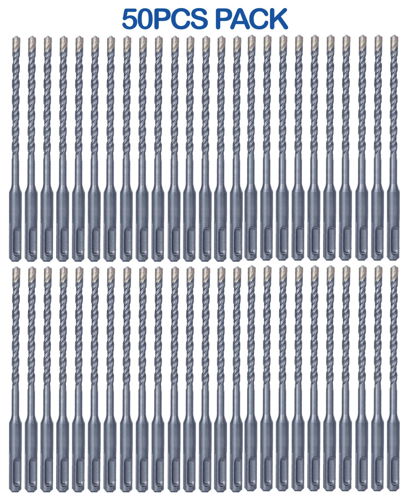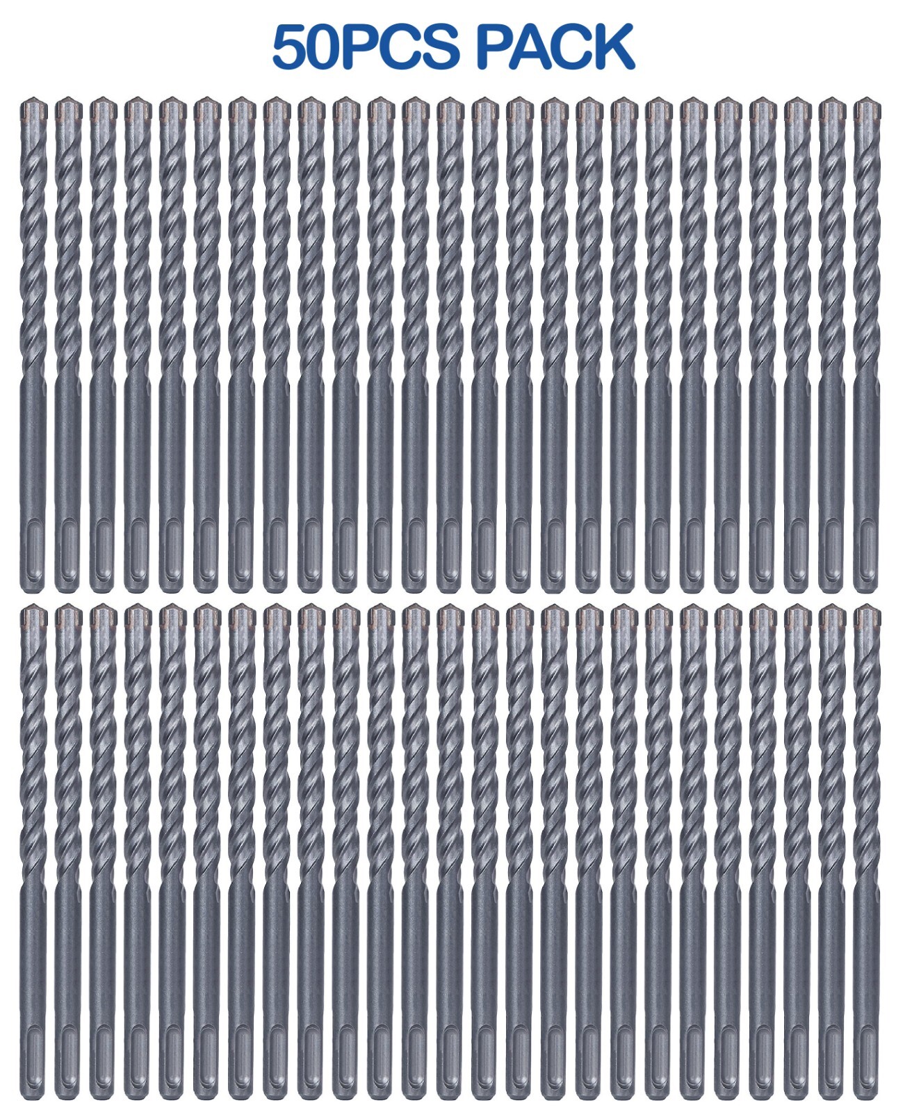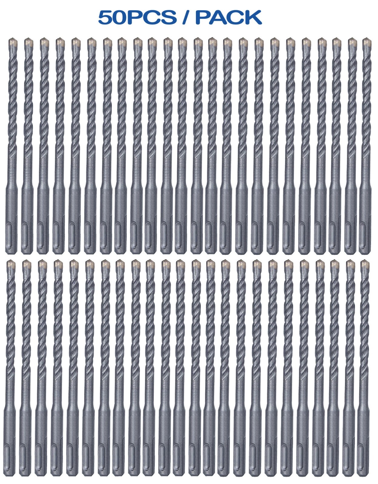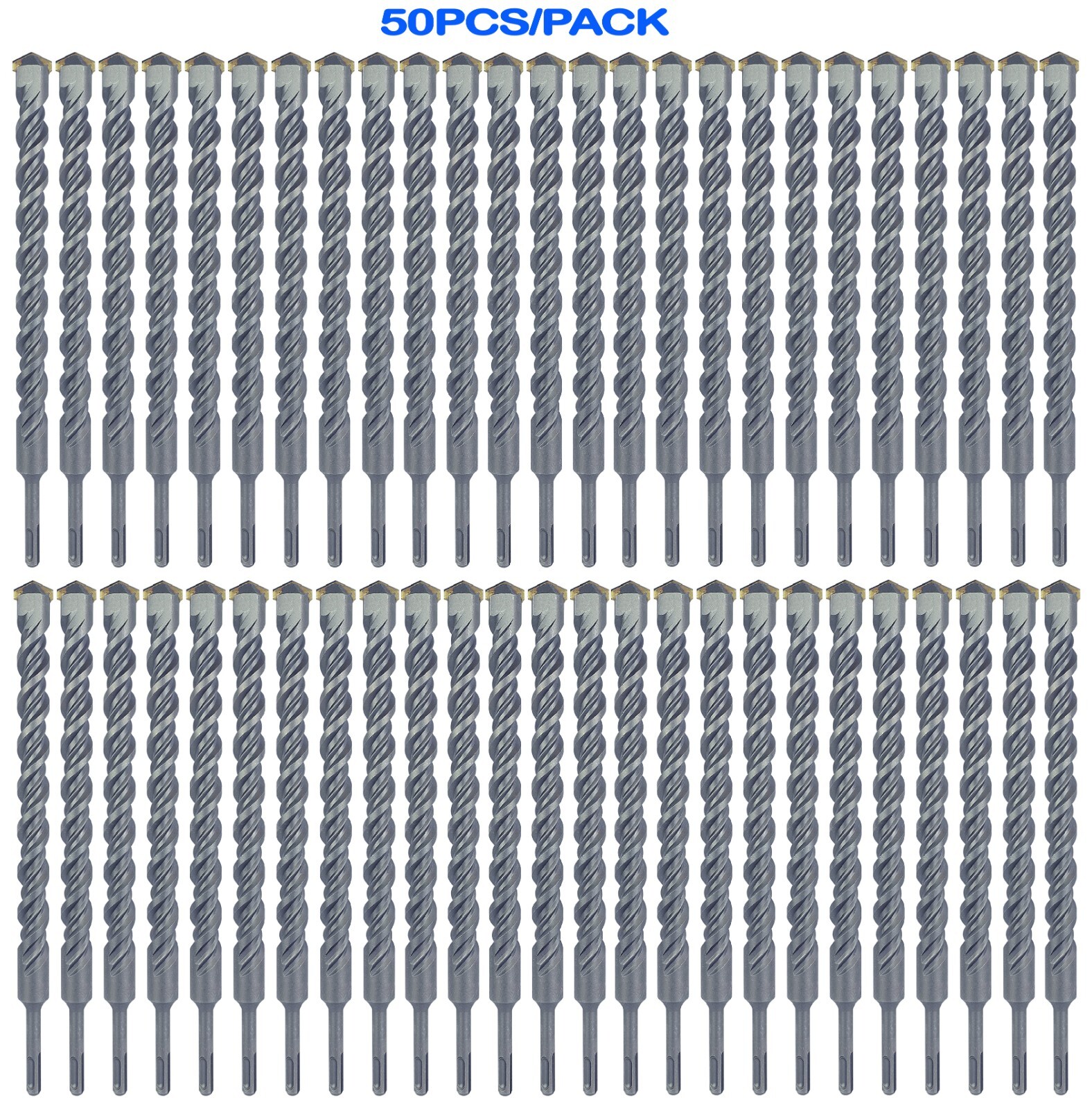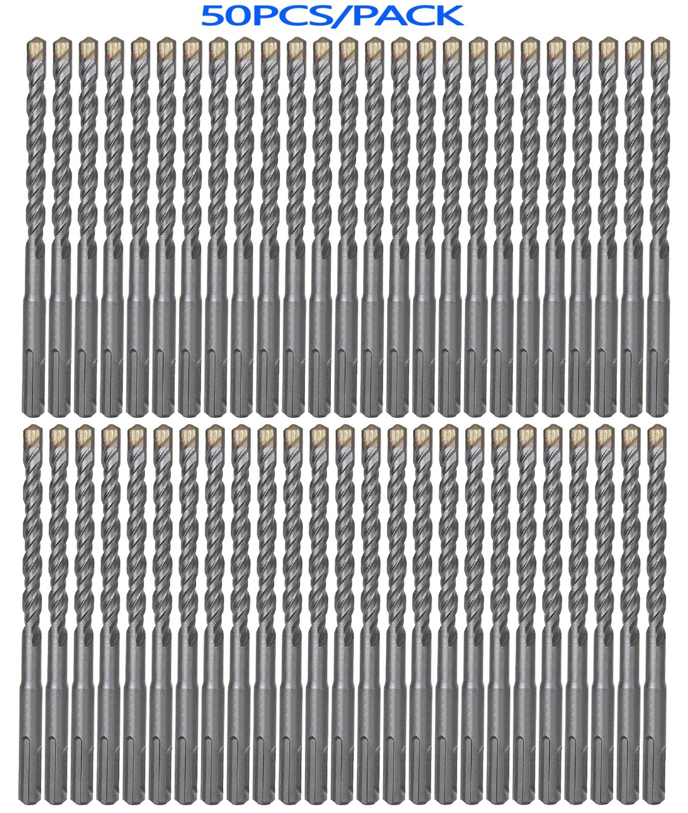 ✅Drill Bits Size: 5/32"x6" TO 5/8" x 6" ✅Quantity/Package: 50 Pcs in a Package. ✅Material: Premium High Grade Carbide Tipped for Cutting Point for best fast penetrating multiple material, such as Mason, Stone, Hard Bricks and Rocks, Concrete.. ✅Cutitng Point: The 130 deg. cutting point to enable easy cutting and best self- centering without walking off.
