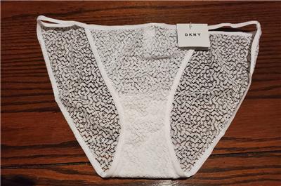 LADIES INTIMATE APPAREL from DKNY DKNY NYLON SPANDEX STRING BIKINI PANTY SOLID WHITE LACE BODY FLAT ELASTIC AT WAISTBAND, STRING SIDES AND LEG OPENINGS. DKNY LOGO TAB BACK. New With Tags 89% NYLON 11% SPANDEX exclusive of decoration for combined shipping, use the shopping cart, and pay for all on one invoice. Ask questions now-We want you to be happy with your purchase! As always- from a smoke free/ pet free environment. ©2010-2023 Sugarcity Sales |