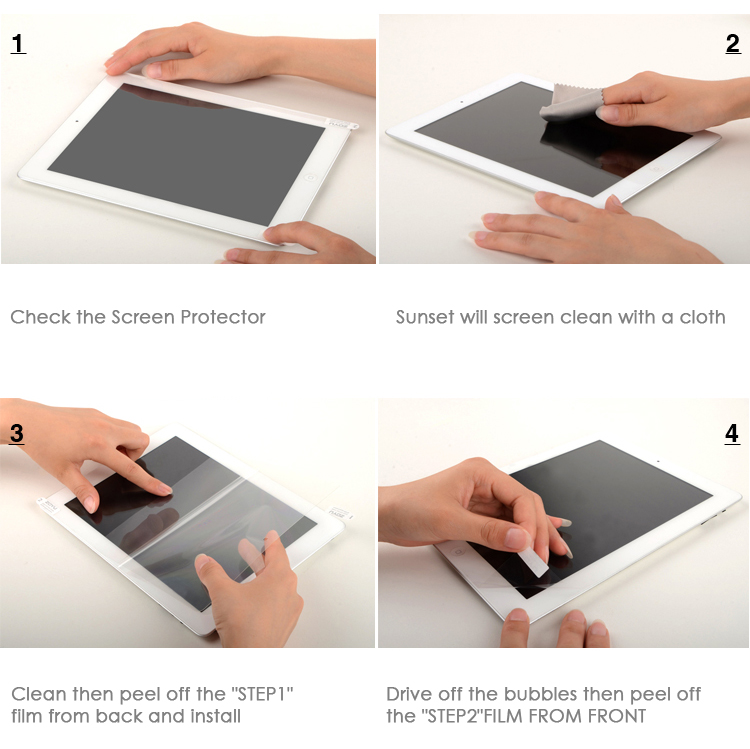 Tips: Please tear the Step 1 protective layer off and then install it from one end to another with the hard bank card(Not Included) to push the bubbles away at the same timePlease select the correct ipad model and quantity from our variation optionsPlease select the correct ipad model and quantity from our variation optionsPlease select the correct ipad model and quantity from our variation options |