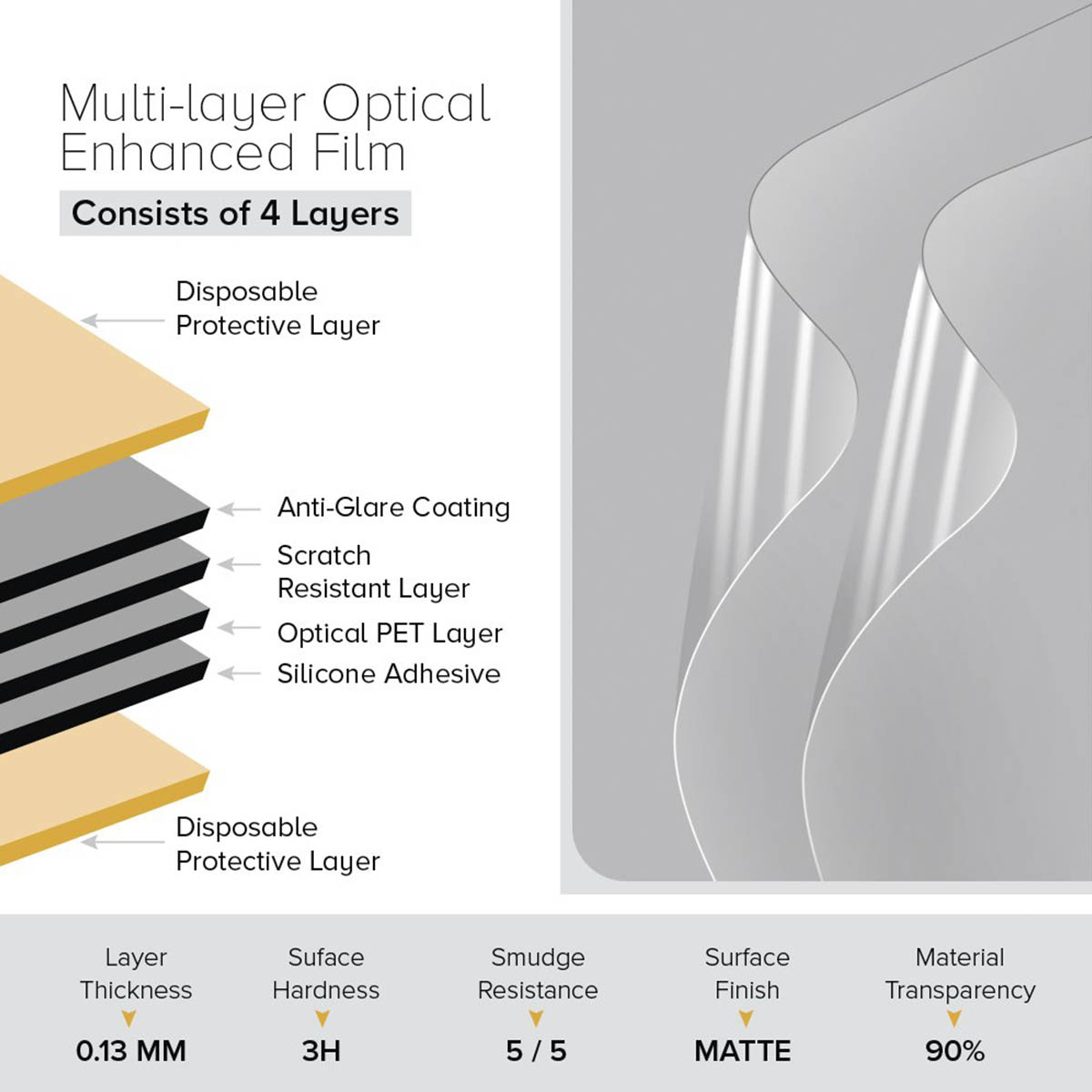 - Anti-glare matte technology which Removes glare and resists fingerprints (Only For Anti-Glare Design Films)