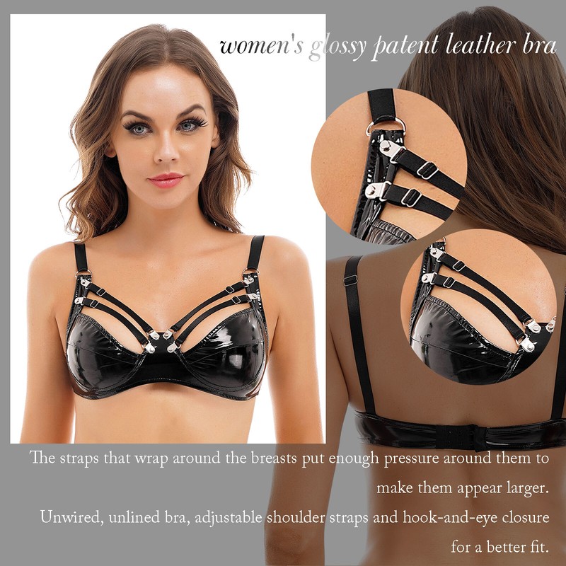 Womens Glossy Patent Leather Bra Top Wire-Free Brassiere Strappy Bralette Nightclub Show Costume.