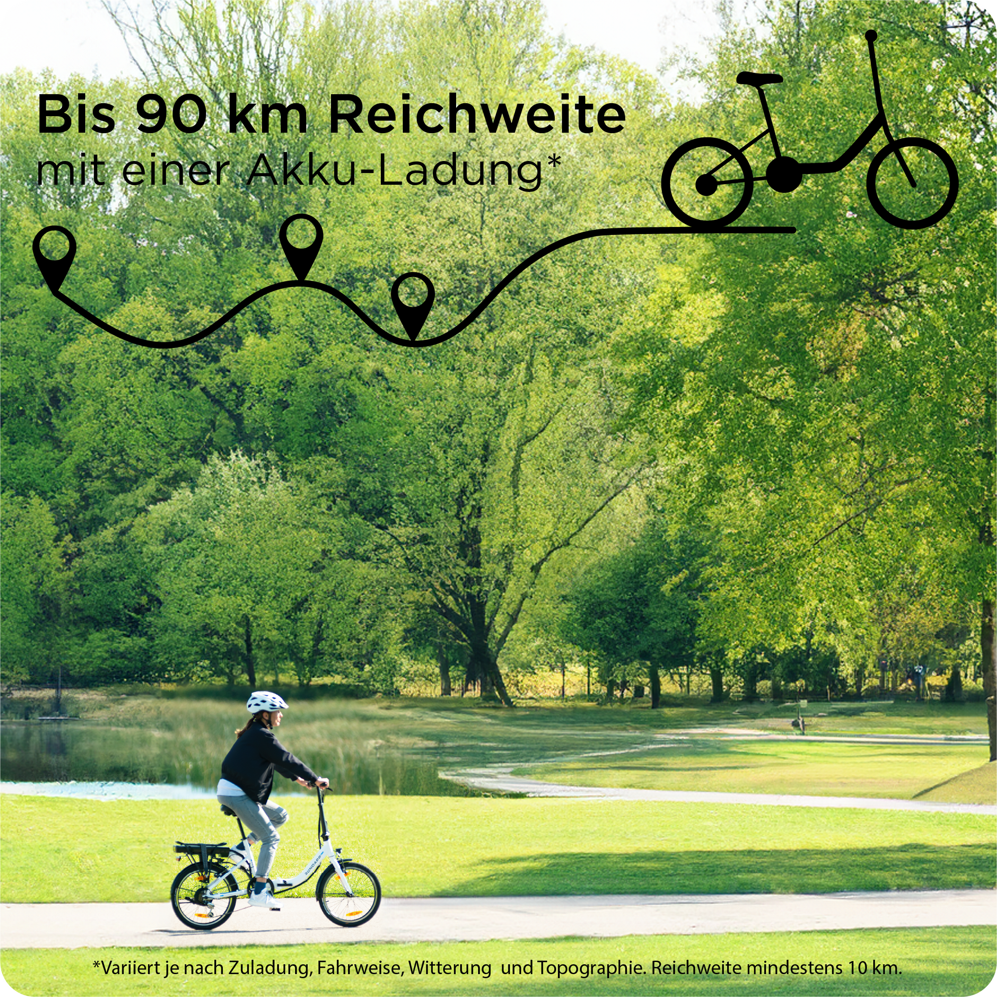 Damit es ohne lange Bastelei gleich losgehen kann, wird das E-Bike bereits zu 98 % vormontiert ausgeliefert. Du musst es lediglich auseinander klappen, Schrauben, Bremsen und Schaltung prüfen.