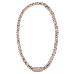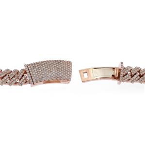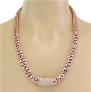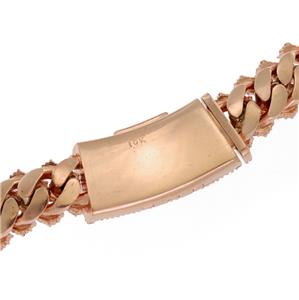 This is a magnificent men's fancy curb necklace, it is crafted from 10k rose gold featuring an 11mm width. The back of the necklace has polished curb links and the front has side to side double short bars, all set with small round cut diamonds along the entire length of the necklace, the long box slide clasp is set with pave diamonds, all totaling 31 carats! The clasp has the 10k gold content stamp.